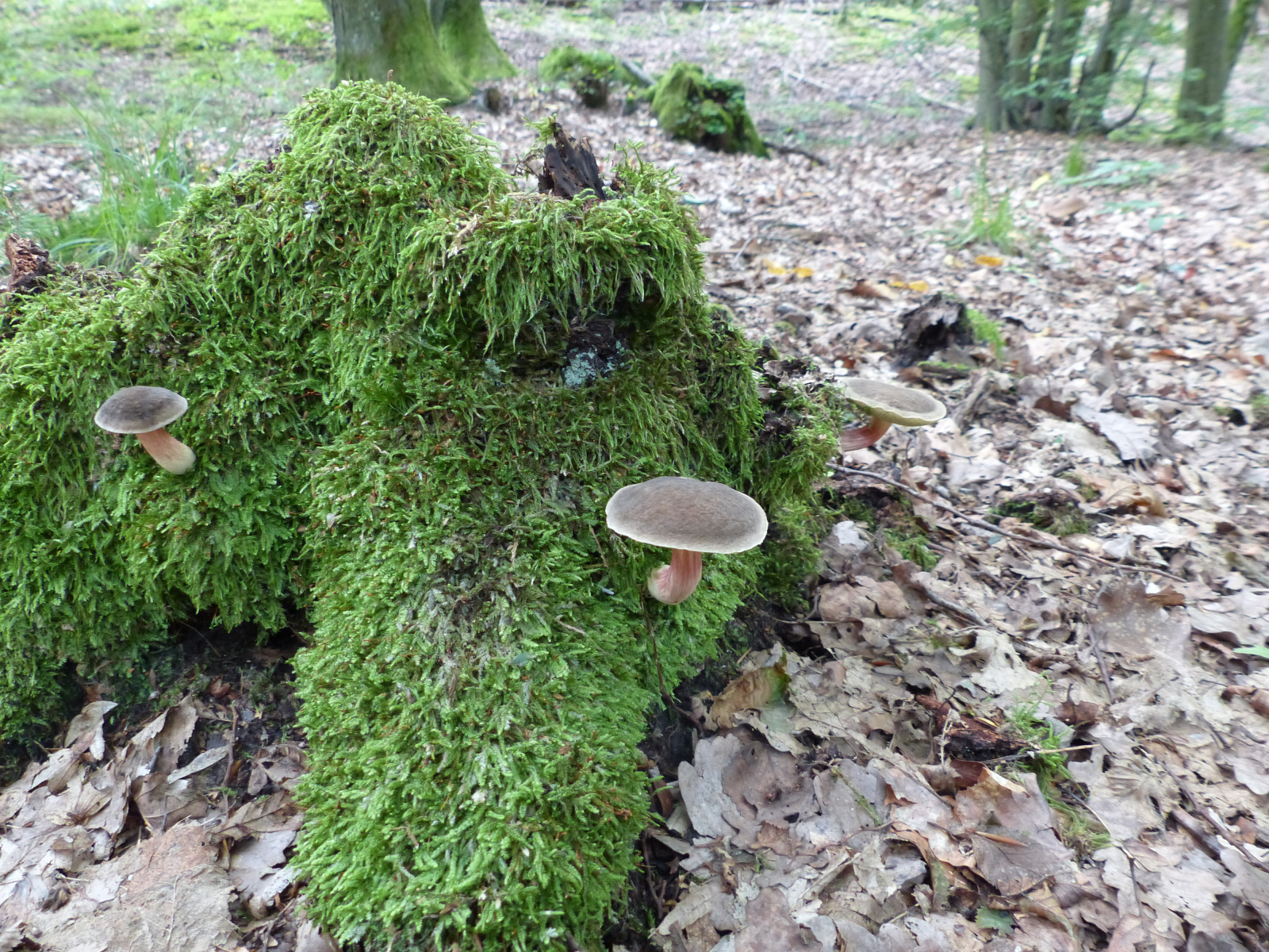 Hier vermute ich einen Helmling? Es ist ein rosablättriger Helmling. Juhu in der Helmlingsecke war ich ja richtig. Danke Jan-Arne.