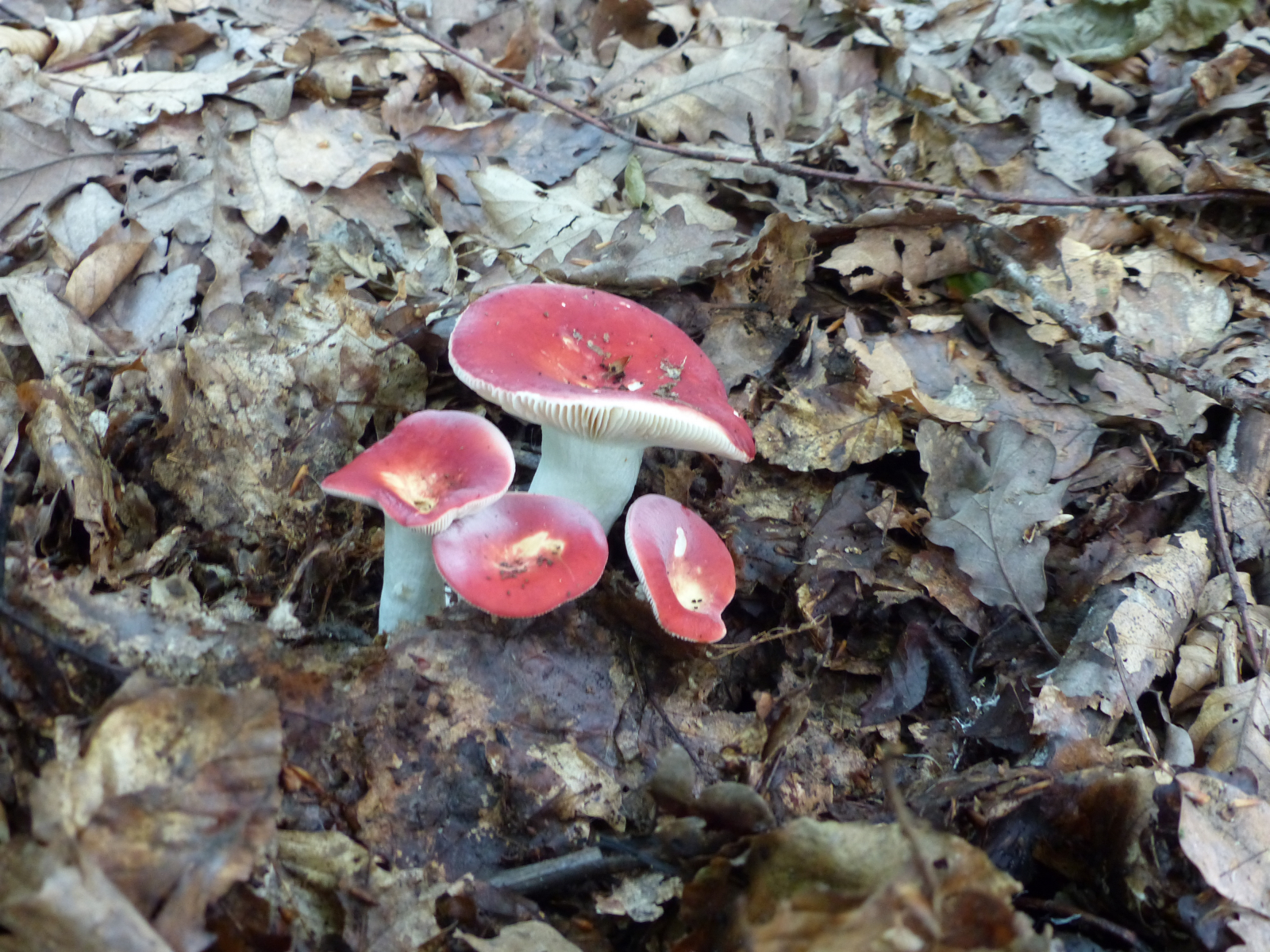 Diese Farbkleckse ..........wunderschön anzusehen. ich denke es könnte zinnoberrote Täublinge sein. Die gibts dort viel.