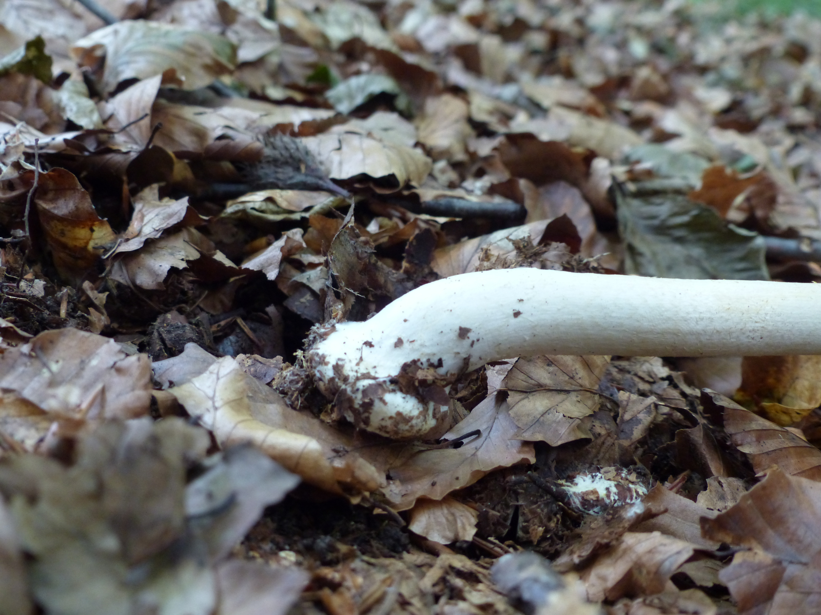 Stiel: etwa 8-10 cm hoch, innen am unteren 4.tel hohl, sieht faserig aus, von der Knolle beginend macht der Stiel einen Knick,