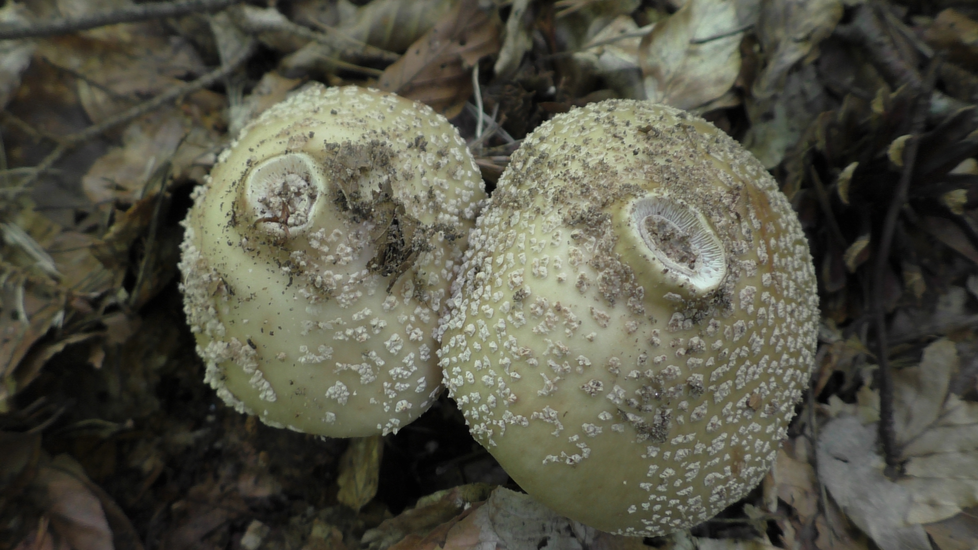 Im Falle dieser Perlpilze fiel mir sofort auf, dass sich an beiden Fruchtkörpern an der Hutoberseite Lamellen gebildet hatten. Nicht allzu selten, doch dass dies bei beiden auftrat, erscheint mir recht ungewöhnlich.