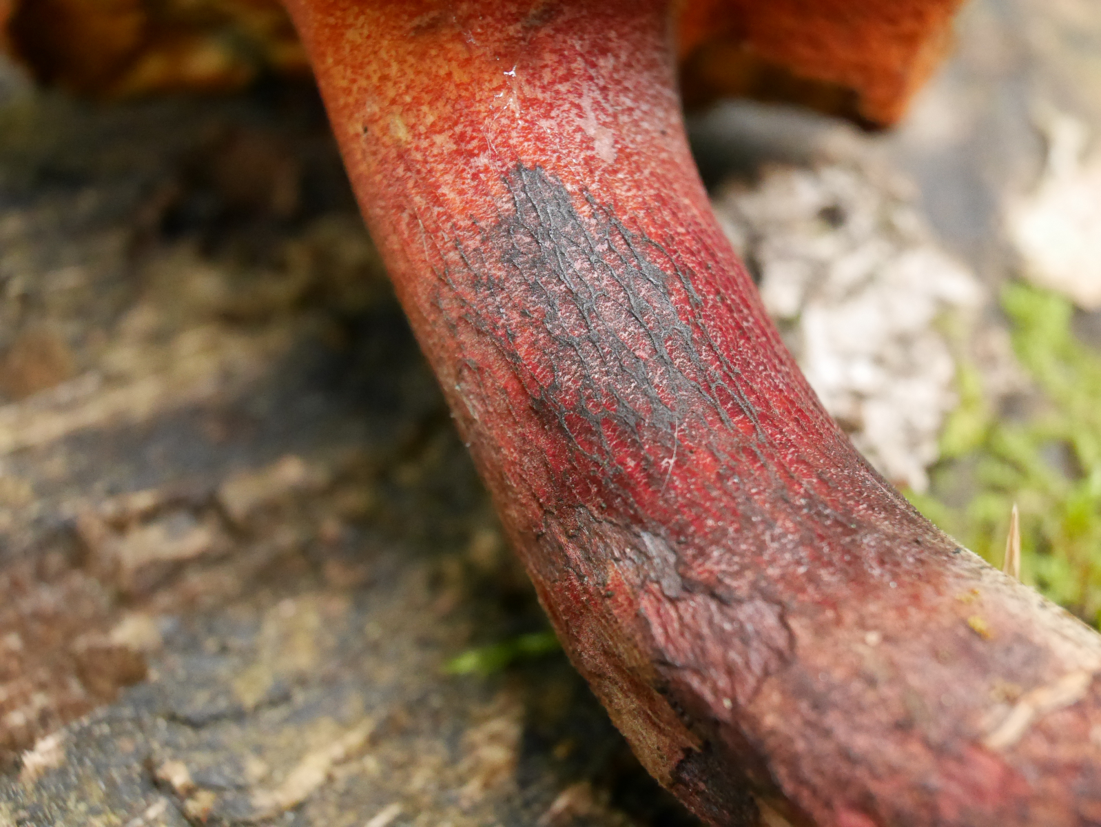 Die anderen mit Boletus - Habitus, viel freudigere Farben insbes. an Stiel und Poren, Huthaut jung gräulich-oliv, erst später mit rosa Tönen, sehr festfleischig, Netz immer deutlich ausgeprägt und durchgängig.
