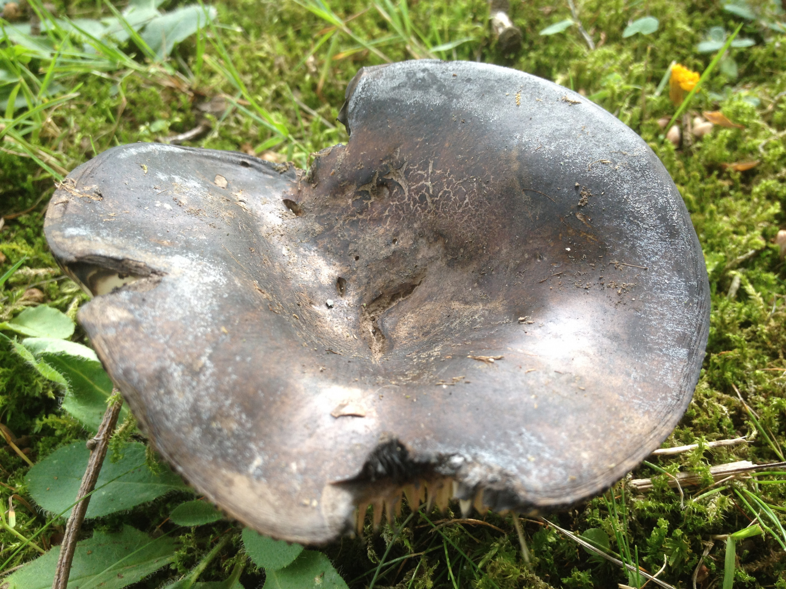 Und das Highlight des Tages (leider rausgerissen und deshalb drapiert). Wenn ich mich nicht irre, ist das der Rosahütige Purpur-Röhrling:
