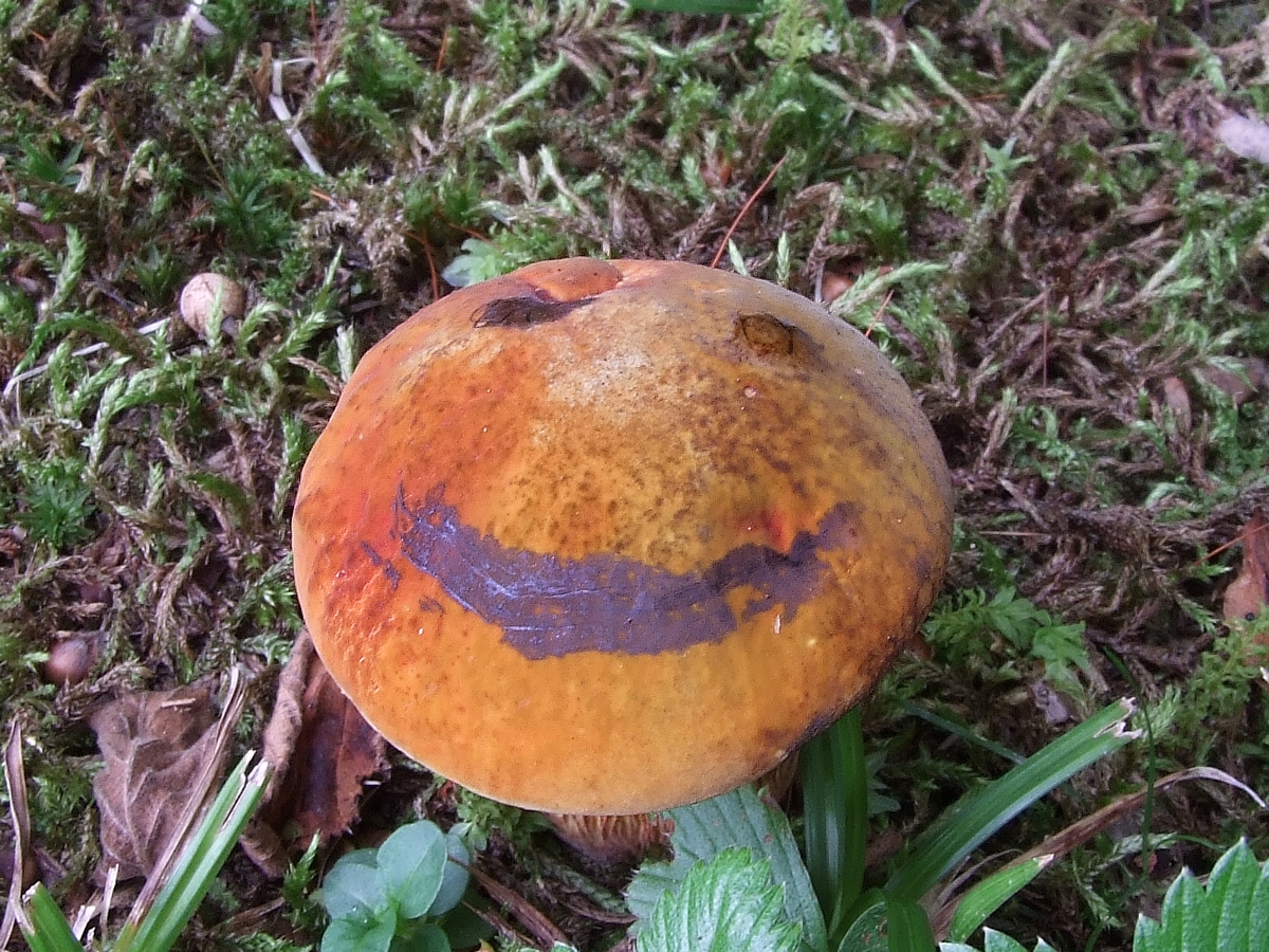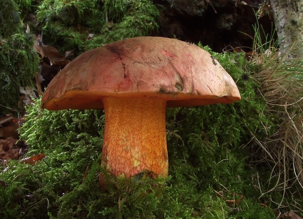 Und das Highlight des Tages (leider rausgerissen und deshalb drapiert). Wenn ich mich nicht irre, ist das der Rosahütige Purpur-Röhrling: