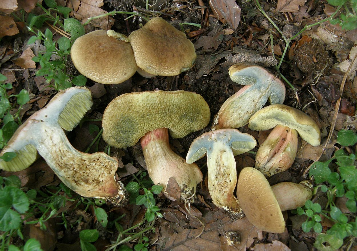 Also nicht alles durcheinander, sondern jeweils eine Kollektion von einem Standort. Mit Schnittbildern und so, daß man alle Teile der Pilze sieht. Das klappt auch bei Filzröhrlingen schon in einem einzigen Bild, im Idealfall sähe das aus wie hier bei Hortiboletus bubalinus: