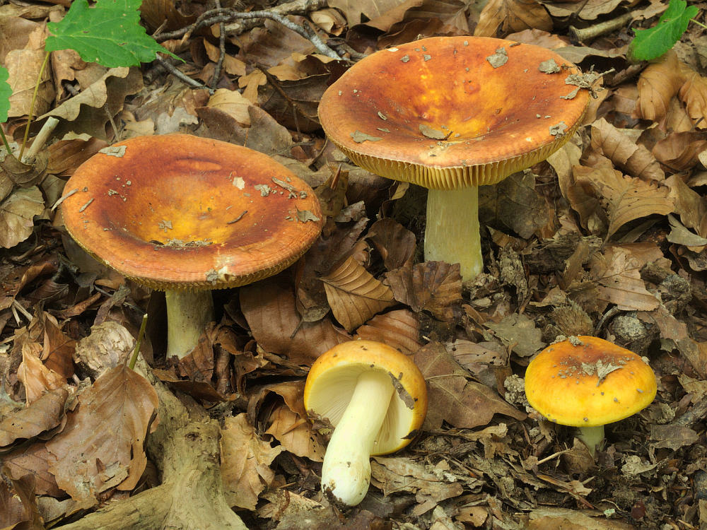 Allgegenwärtig war ein großer Täubling mit mildem Geschmack und dotterfarbenem Sporenpulver. Trocken ist seine Hutoberfläche matt und die Hutfarben variieren von olivbraun bis weinrot in vielen Übergängen. Meistens weist sein Stiel mehr oder weniger weinrote Töne auf.