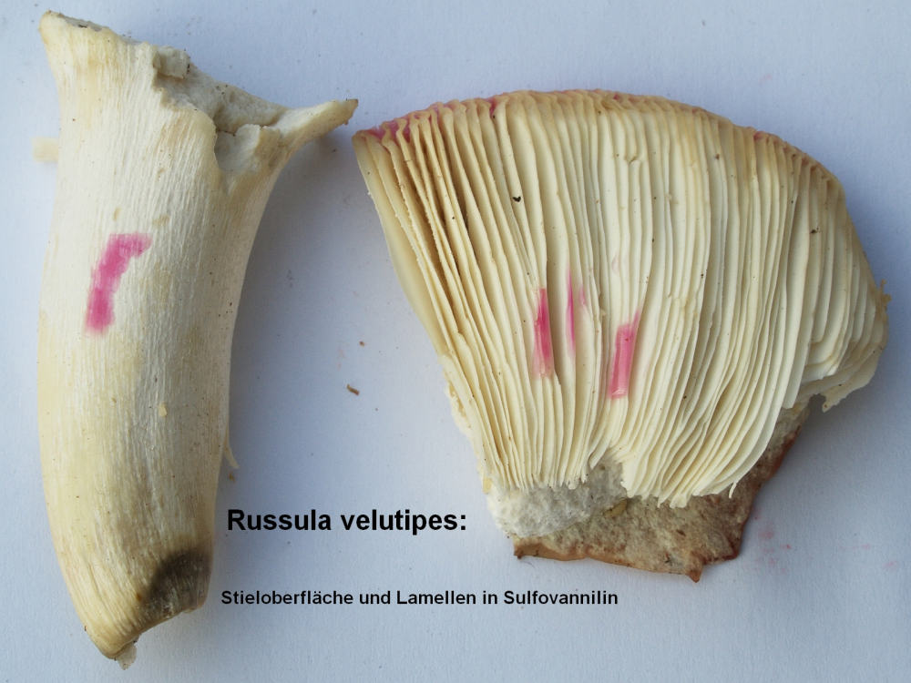 Die Beschreibung jung oliv und später weinrot sehe ich mit dem nächsten Bild als widerlegt an. Bei der Art geht es kreuz und quer durcheinander. Charakteristisch ist jedoch die Reaktion des Fleisches