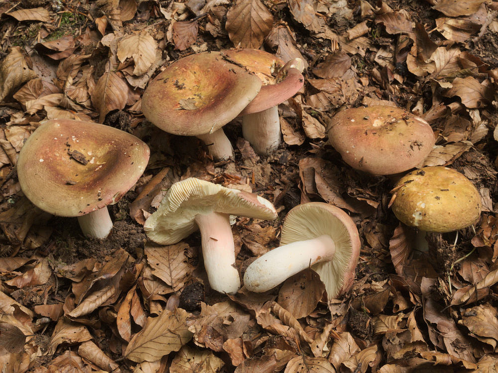 Allgegenwärtig war ein großer Täubling mit mildem Geschmack und dotterfarbenem Sporenpulver. Trocken ist seine Hutoberfläche matt und die Hutfarben variieren von olivbraun bis weinrot in vielen Übergängen. Meistens weist sein Stiel mehr oder weniger weinrote Töne auf.