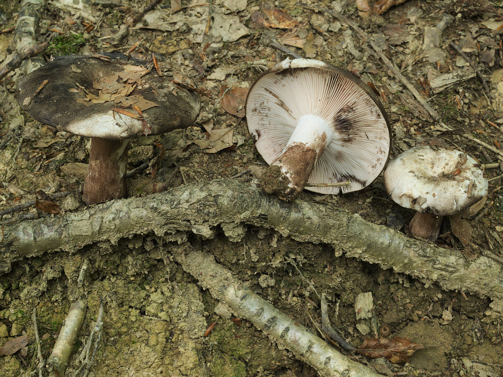 Von den Schwärz-Täublingen bekamen wir gar fünf Arten zu sehen. Alle Arten der Gruppe schwärzen mehr oder weniger stark, wobei teilweise dem Schwärzen eine rosarote Verfärbung vorausgeht. Eine direkt schwärzende Art mit eigentümlichem Nachgeschmack ist der