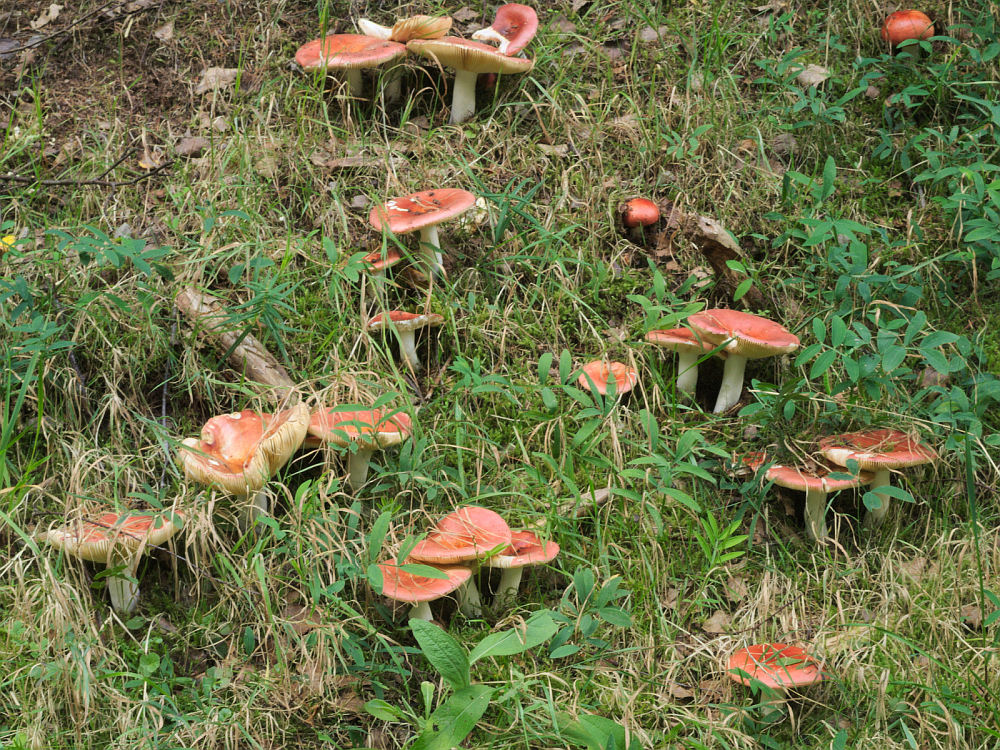 Bei ca. 50 Arten an einem Tag dürfen natürlich die Weißtäublinge nicht fehlen. Der Schmalblättrige Weiß-Täubling (Russula chloroides) und der Gemeine Weiß-Täubling (Russula delica) werden über Blauschimmer in den Lamellen, Lamellenanzahl pro cm, Größe der Fruchtkörper und geringe mikroskopische Unterschiede getrennt. Von beiden Arten sind mehrere Varietäten beschrieben und es gibt fließende Übergänge, die eine sichere Bestimmung oft unmöglich machen.