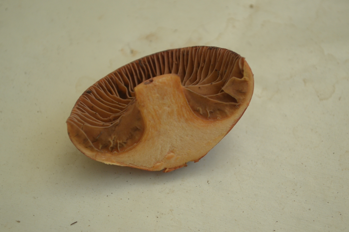 vergleiche deinen Fund mal mit Chroogomphus helveticus, dem Filzigen Gelbfuß. Das Sporenpulver ist sehr dunkel, in dichter Lage fast schwarz - so sieht es auch auf dem Foto aus, finde ich.