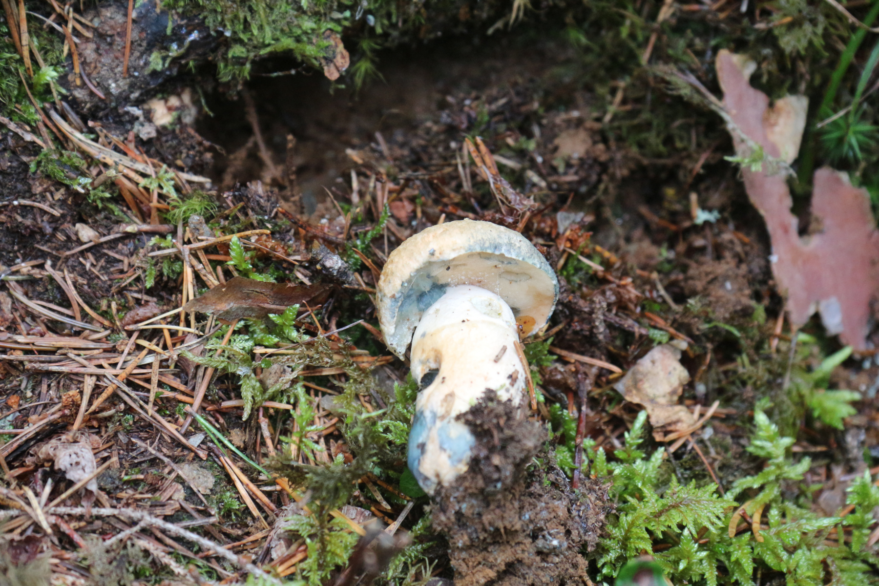 Sakra, wie ein Wiesel ist er gestartet, zum ersten nicht auffindbarem Fund, Kornblumenröhrling, Gyroporus cyanescsens. "War gestern noch da, den hat sich einer geschnappt", .... es ist zum Jaulen, der fehlt mir noch ... :yumyum: