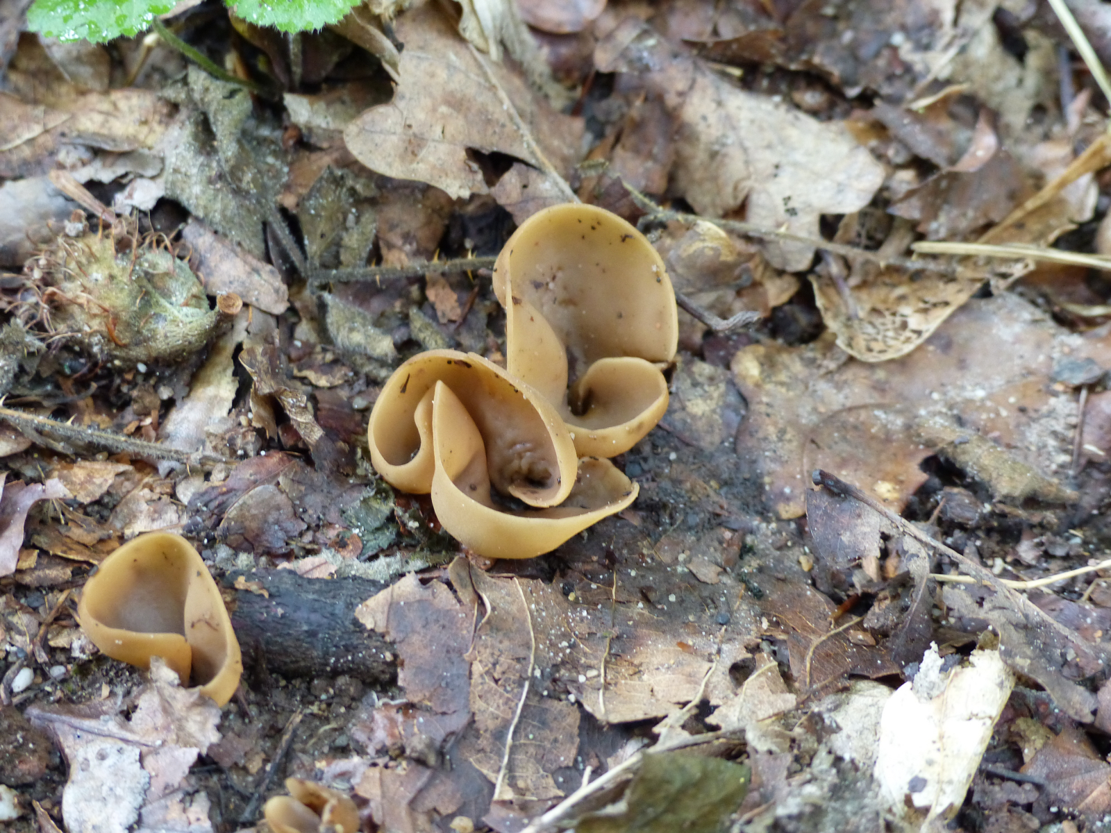 In dem fall würde ich sogar eine Peziza nicht ausschließen. Die makroskopische trennung klappt leider auch nicht immer (wegen den eingeschlitzten und eingerollten Fruchtkörpern): Das kann Peziza (diverse Arten der Gattung) gelegentlich auch machen.