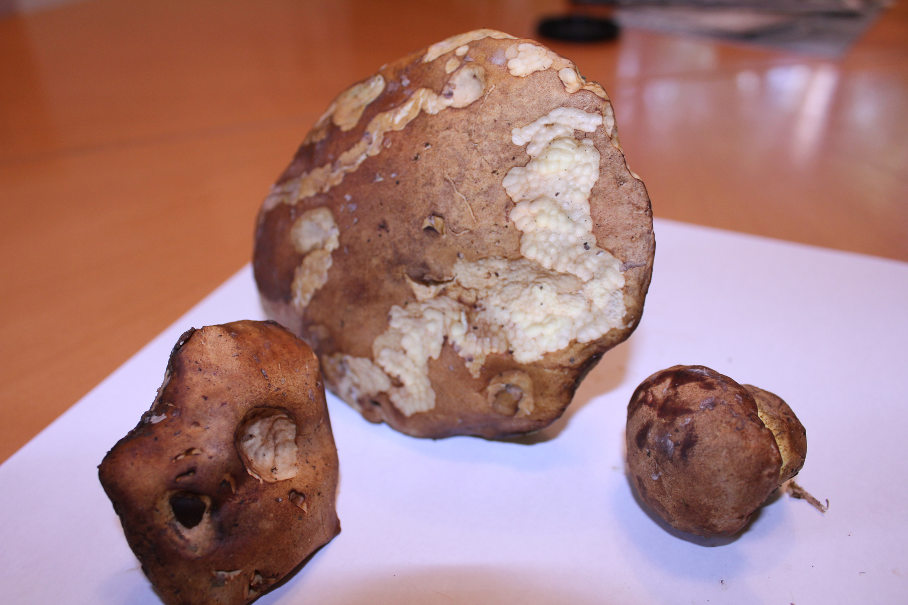 Nix für ungut, aber zumindest die beiden oberen auf dem ersten Bild würde ich nicht mehr essen. Der kleine darunter könnte noch ok sein, aber mit den anderen beiden stimmt was nicht: Ausgehend von den Farbverläufen der Poren und Röhren und den irgendwie (zumindest bildmäßig) mulschig wirkenden Hutoberfläche.