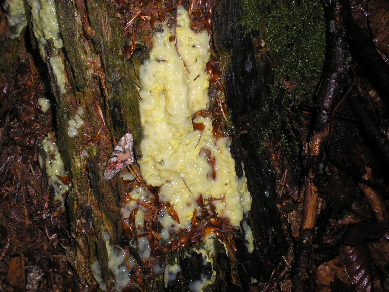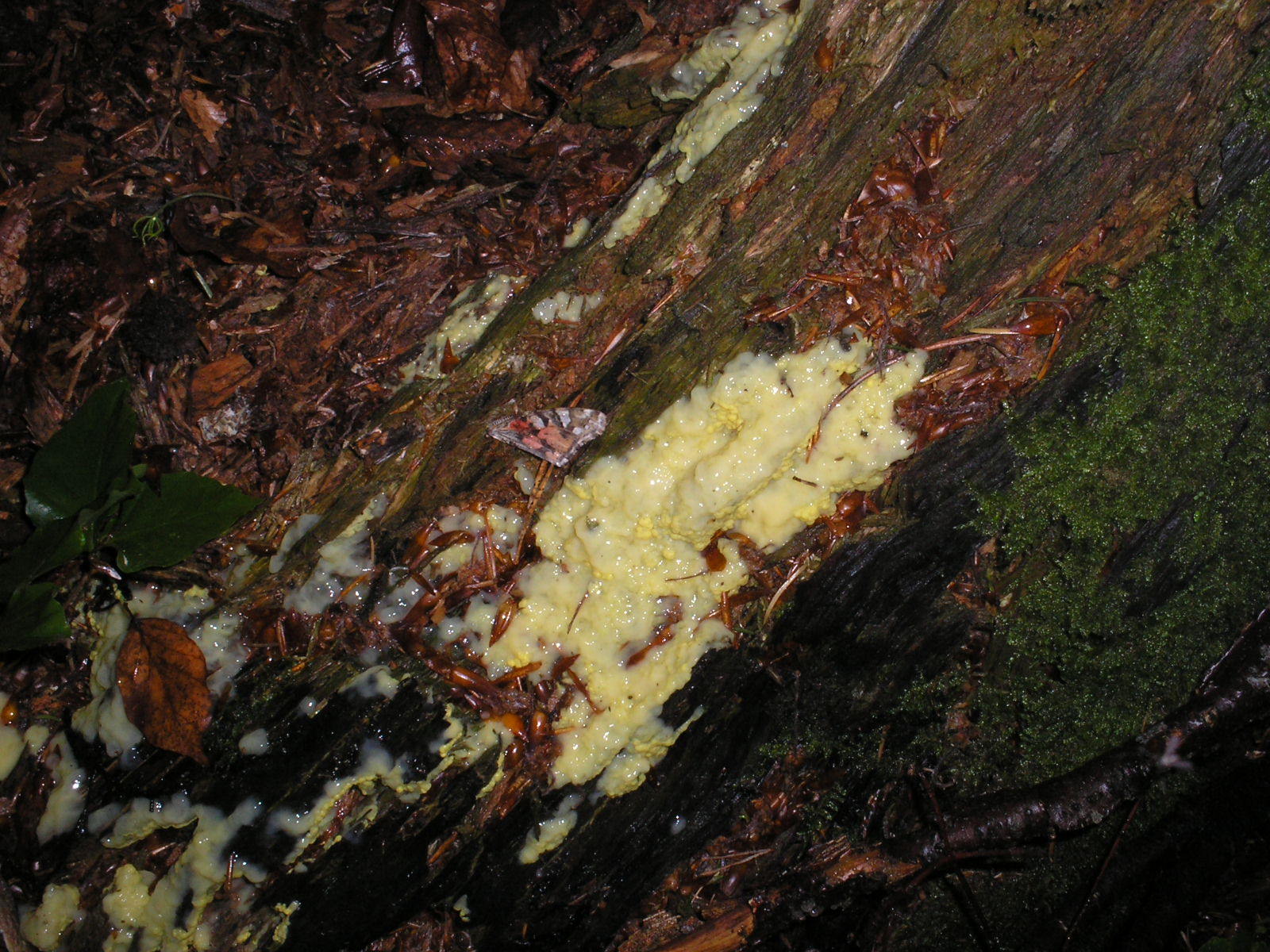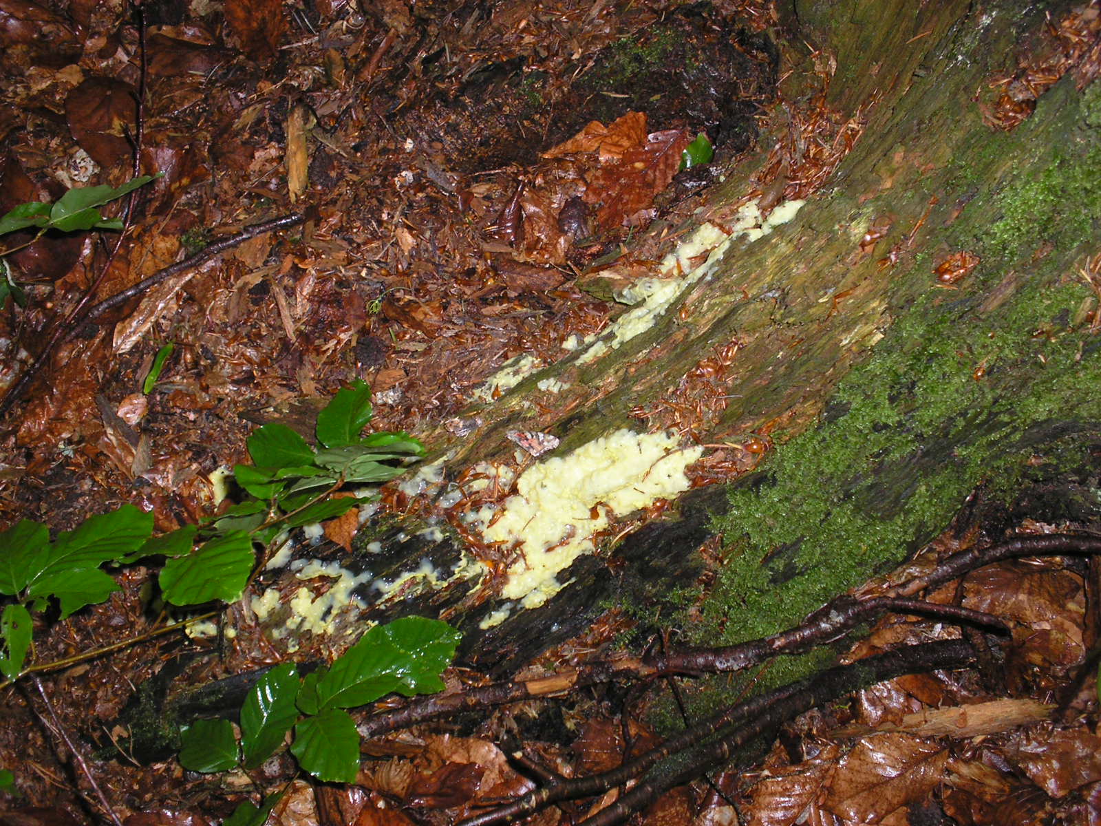 mit Deiner Vermutung liegst Du m.E. richtig. Allerdings ist auf den Fotos lediglich das Plasmodium und nicht der fertige Fruchtkörper des Schleimpilzes zu erkennen. Insofern kann die Art nicht bestimmt werden. Vielleicht handelt es sich um ein frühes Stadium des Weißgelben Netzpolsters (Ceratiomyxa fruticulosa var. poroides) - aber das ist reine Spekulation.