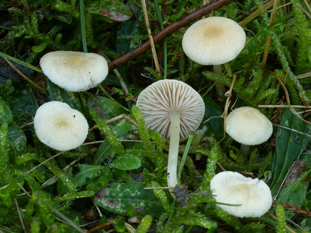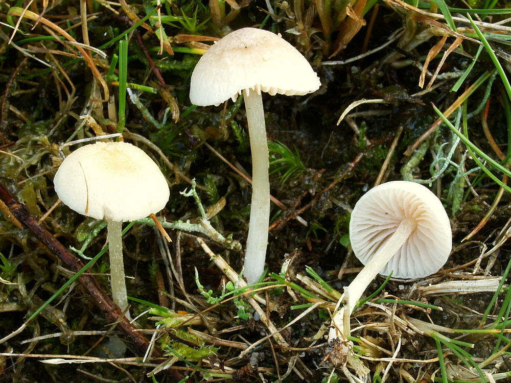 Hutdurchmesser 0,8-1,5 cm, weiss, oberfläche Filzig , Lamellen am Stiel herablaufend, Stiel 3 cm lang, dünn, ganzer Fruchtkörper ähnlich einer Loroeleia (dünner Stiel und Nabelingsartig) , Geruch mehlartig