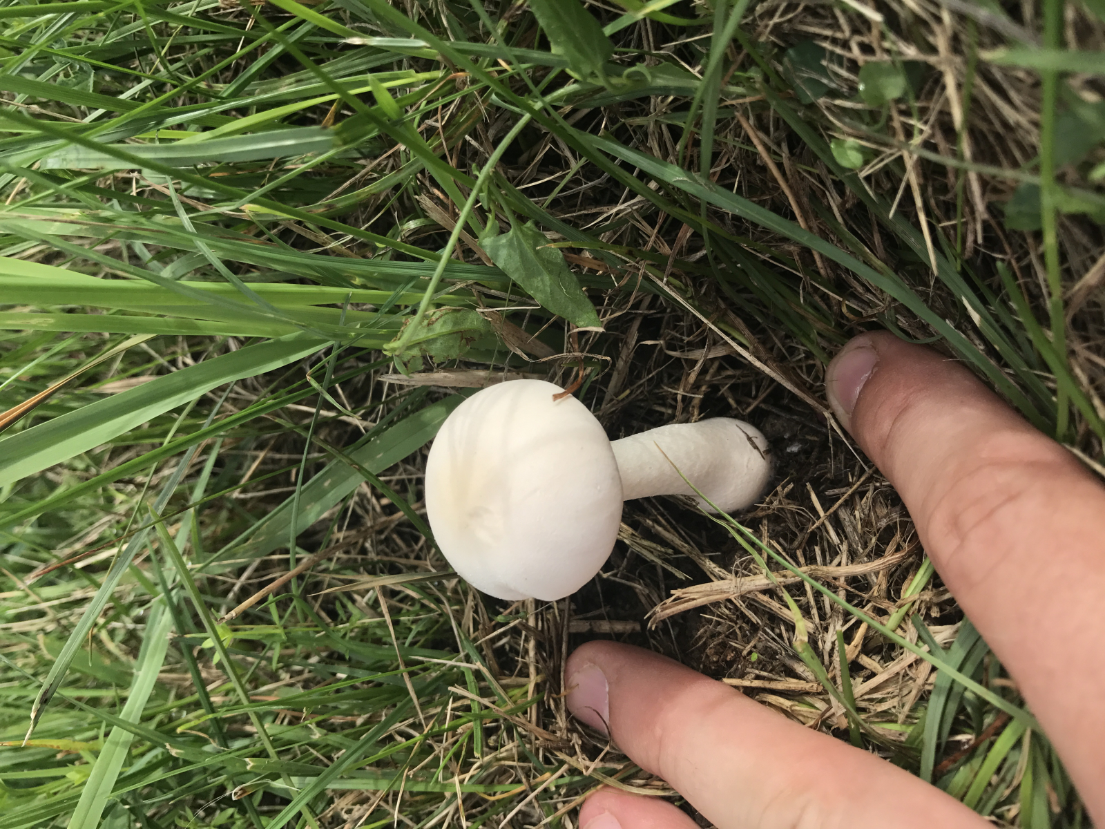Auf Freier Fläche weiße Pilze die mir sehr stark Nach Knollenblätterpilz