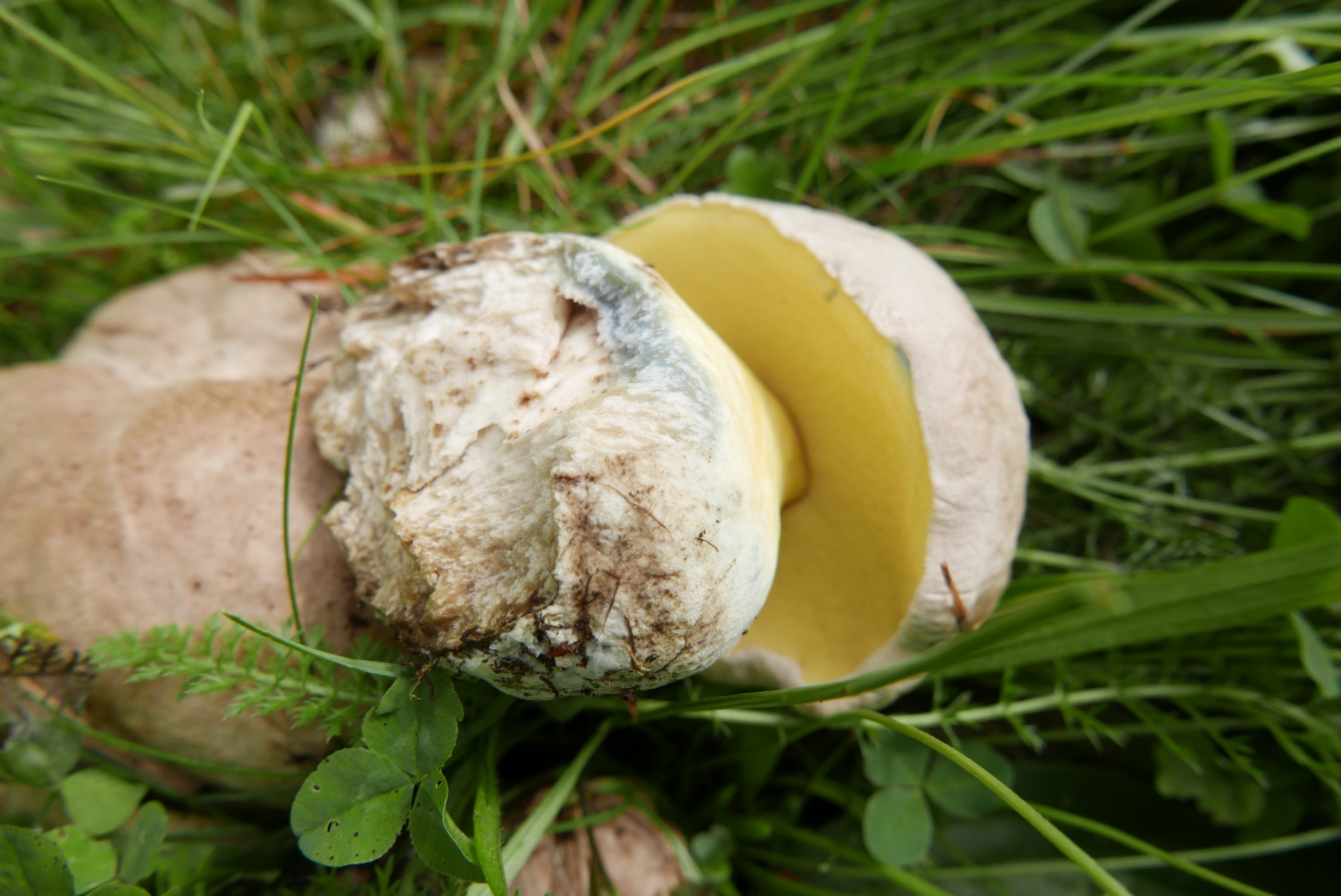 Hab mir im Bestimmungsbuch auch noch Ziegenlippe und Sandröhrling angeschaut, sieht auch nicht danach aus. Rotfußröhrling denke ich kann ich ausschließen.