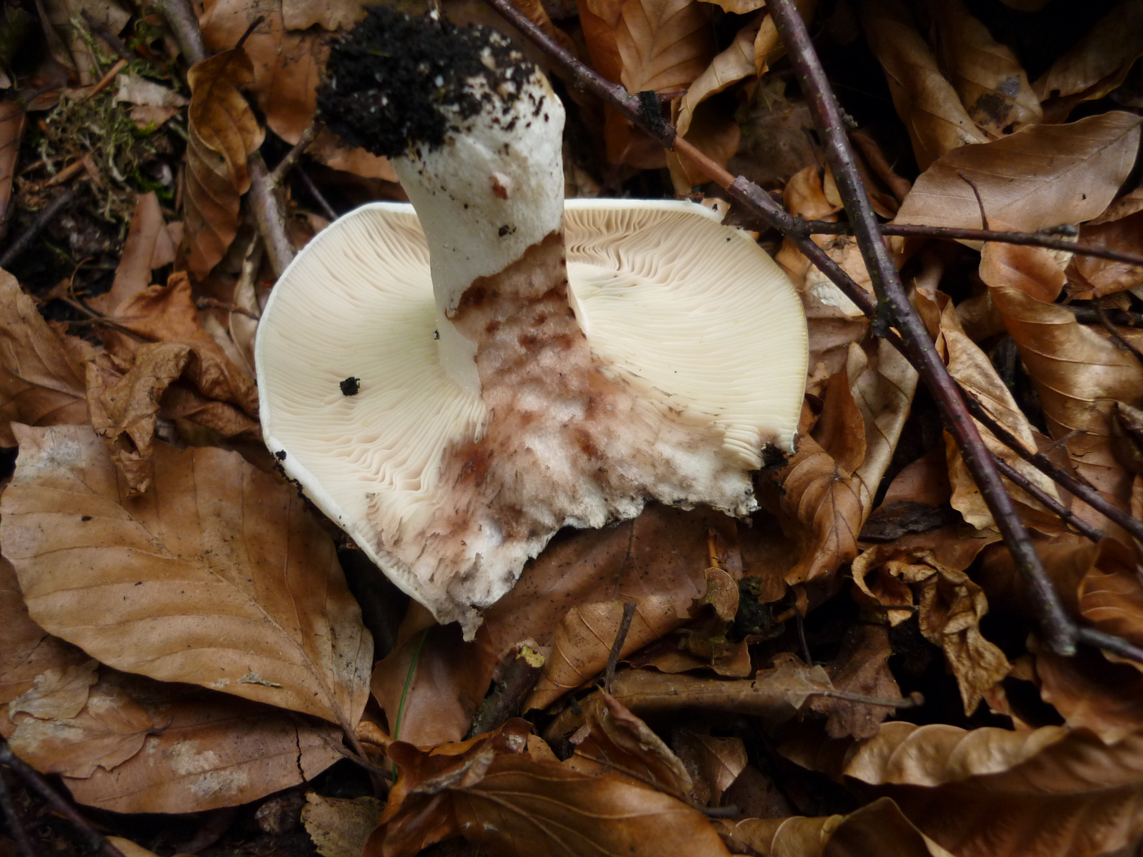 Der Helle ist an den Fraßstellen dunkel angelaufen. Der Täubling mit den rötlichen Fraßstellen aus dem Anhang gehört auch dazu. Ich bekomme ihn nur gerade hier nicht richtig einsortiert.