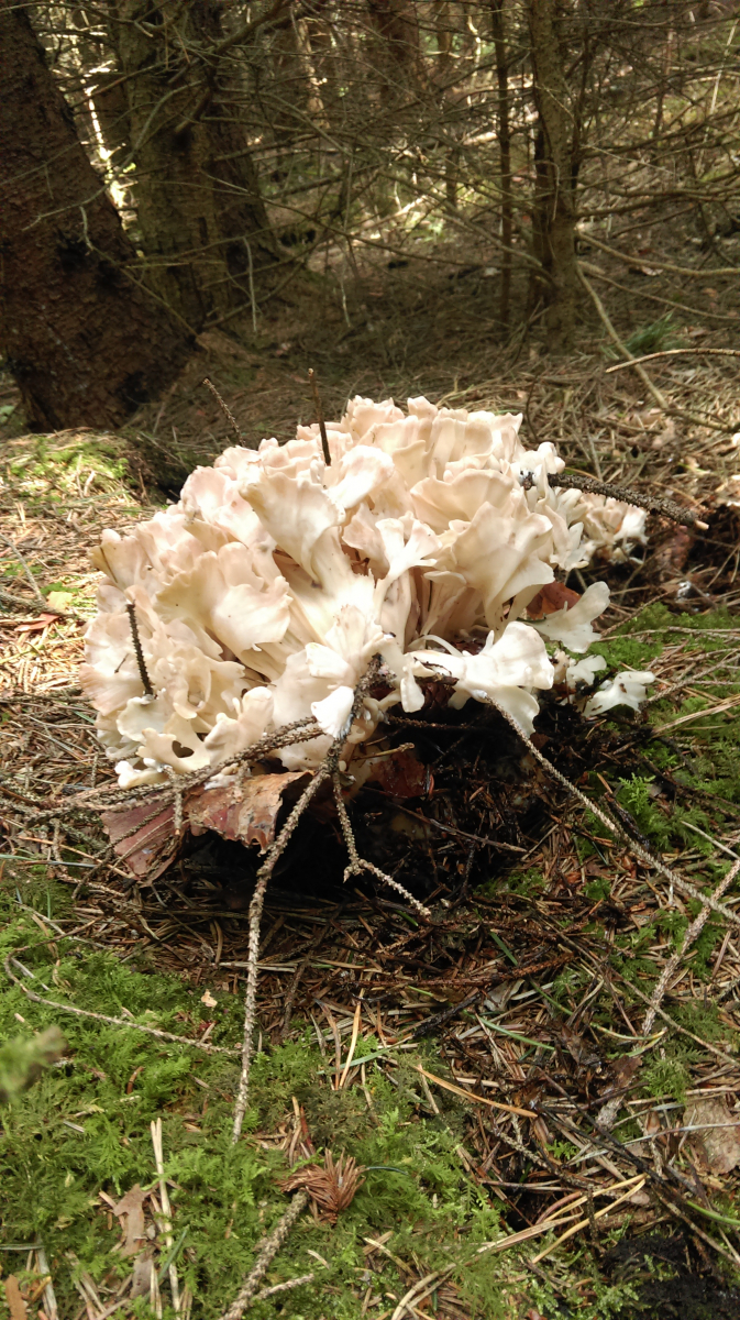 Die Schönheit würde ich als breitblättrige Glucke (Sparassis brevipes) ansprechen.