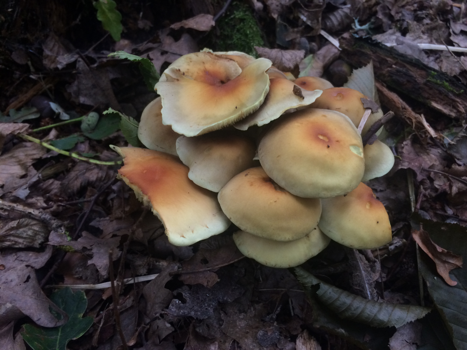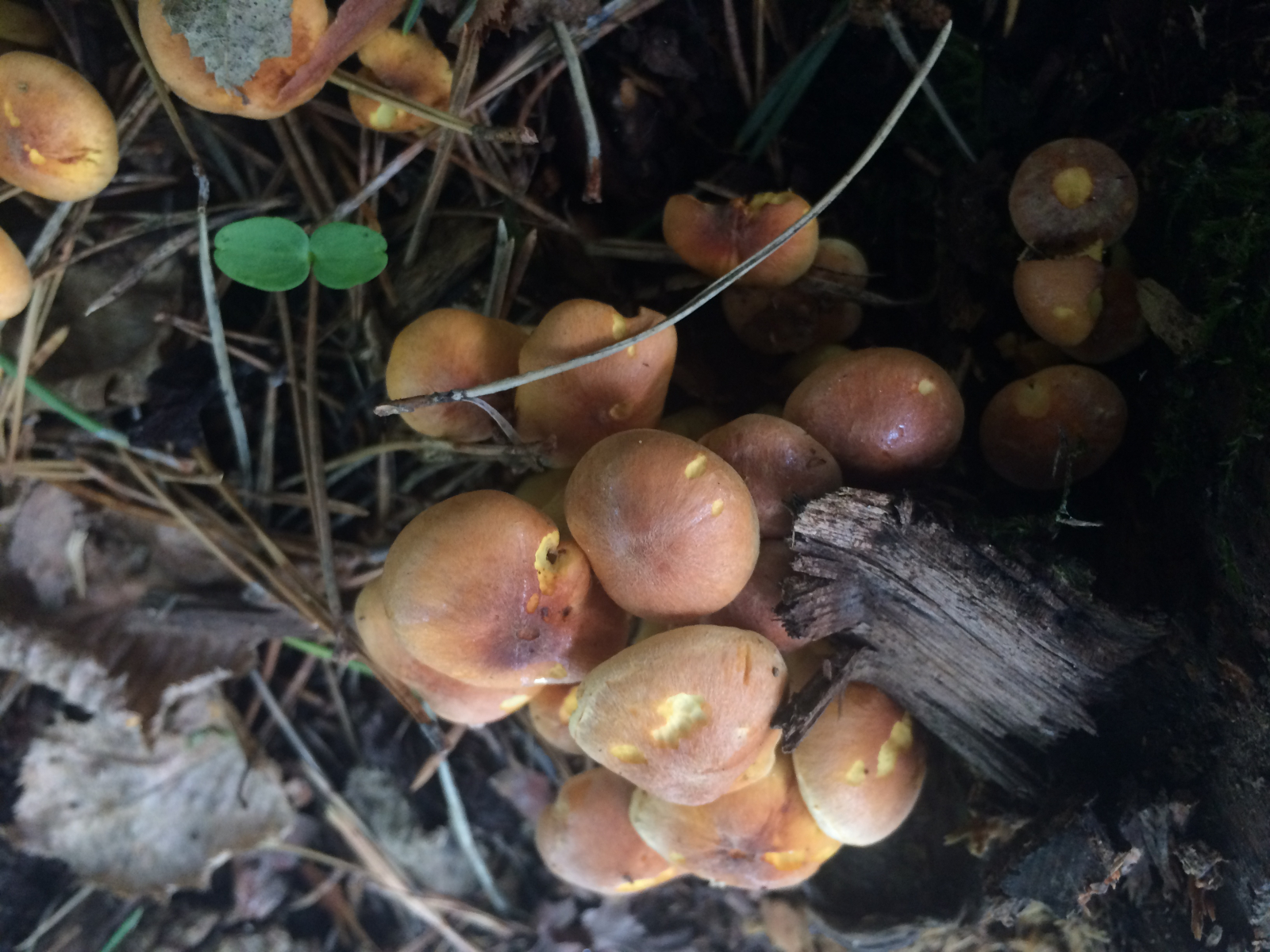Nachdem mir letzten Freitag hier bei meinem Forum-Einstieg so nett mit meinem etwas verblassten Schönfußröhrling geholfen wurde, bin ich heute voll motiviert gleich nochmal los gezogen. Leider sehr trocken und keine Röhrlinge gefunden. Dafür etwas, ewas mich sehr an diesen Schleimschirmling vs Schwefelkopf Thread erinnert hat.