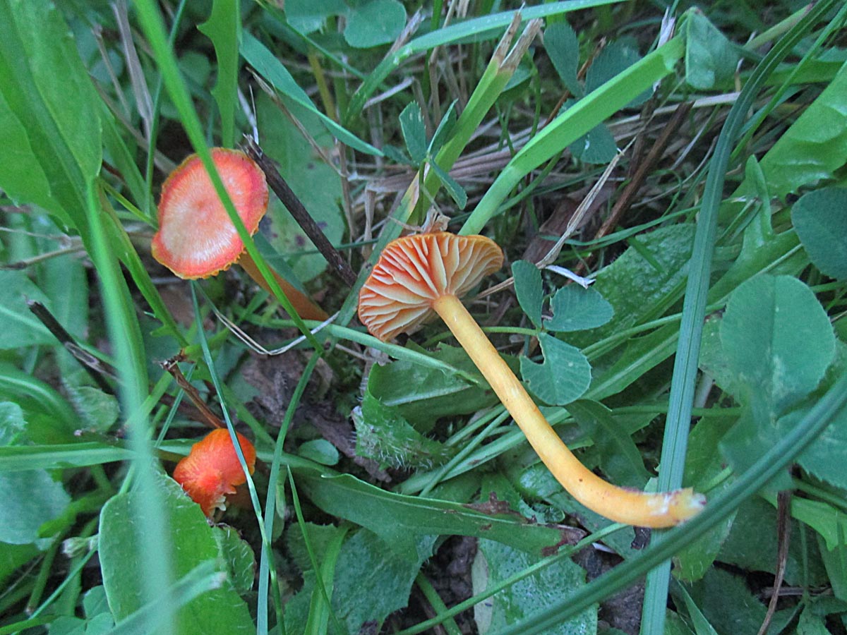 und zum Schluß habe ich hier noch ein paar unbestimmte Saftlinge (Hygrocybe spec.)