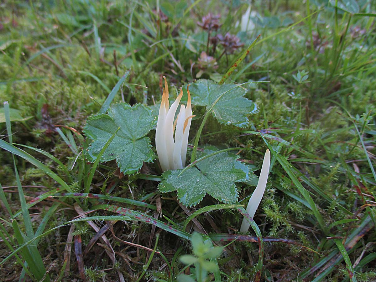 und zum Schluß habe ich hier noch ein paar unbestimmte Saftlinge (Hygrocybe spec.)