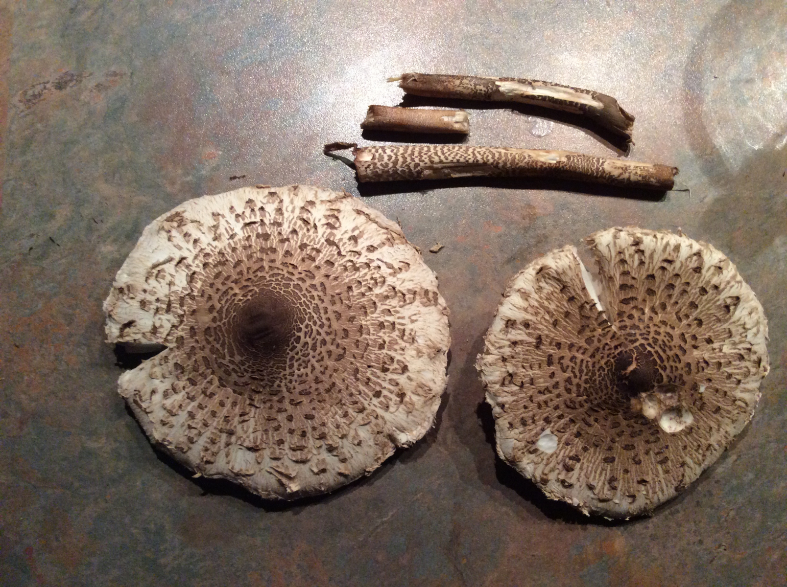auch ich sehe hier zwei Parasole oder zumindest Pilze aus derselben Gattung der Riesenschirmlinge.
