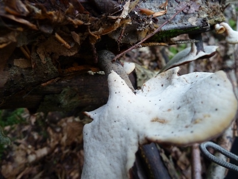 Dieser Porling auf Totholz ist mir noch nicht untergekommen, handelt es sich vielleicht um den kastanienbraunen Stielporling?