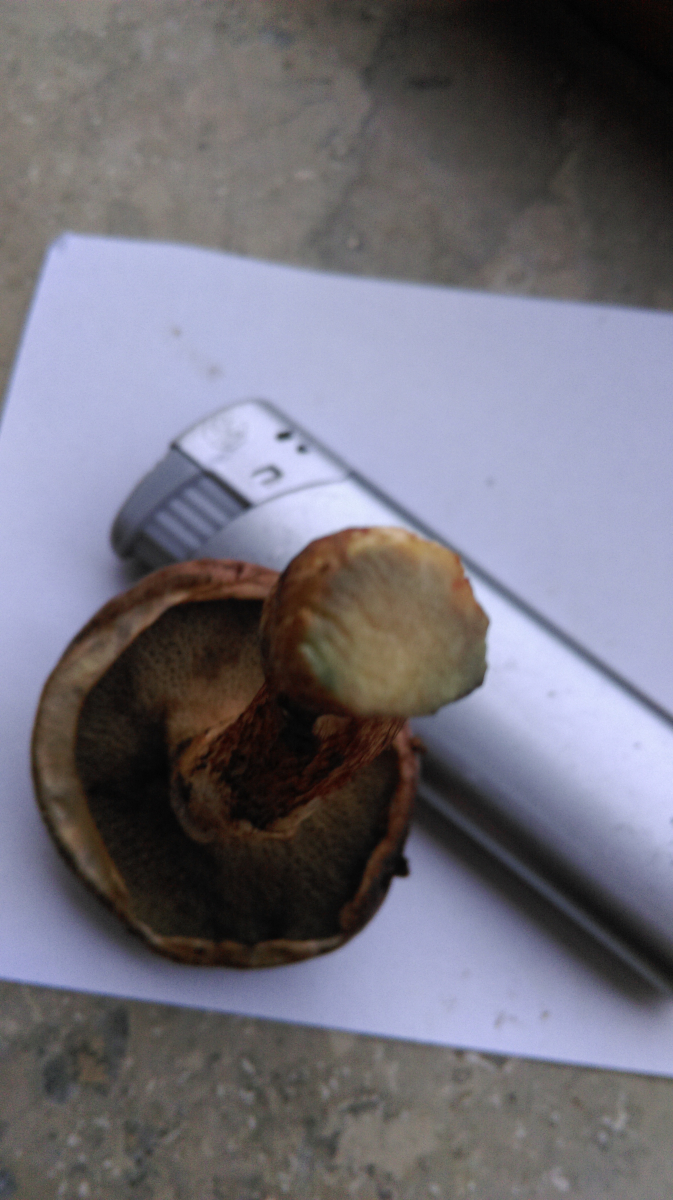 Im Wald war der Anschnitt deutlich blauend ungefähr wie beim wurzelnden Bitterröhrling.