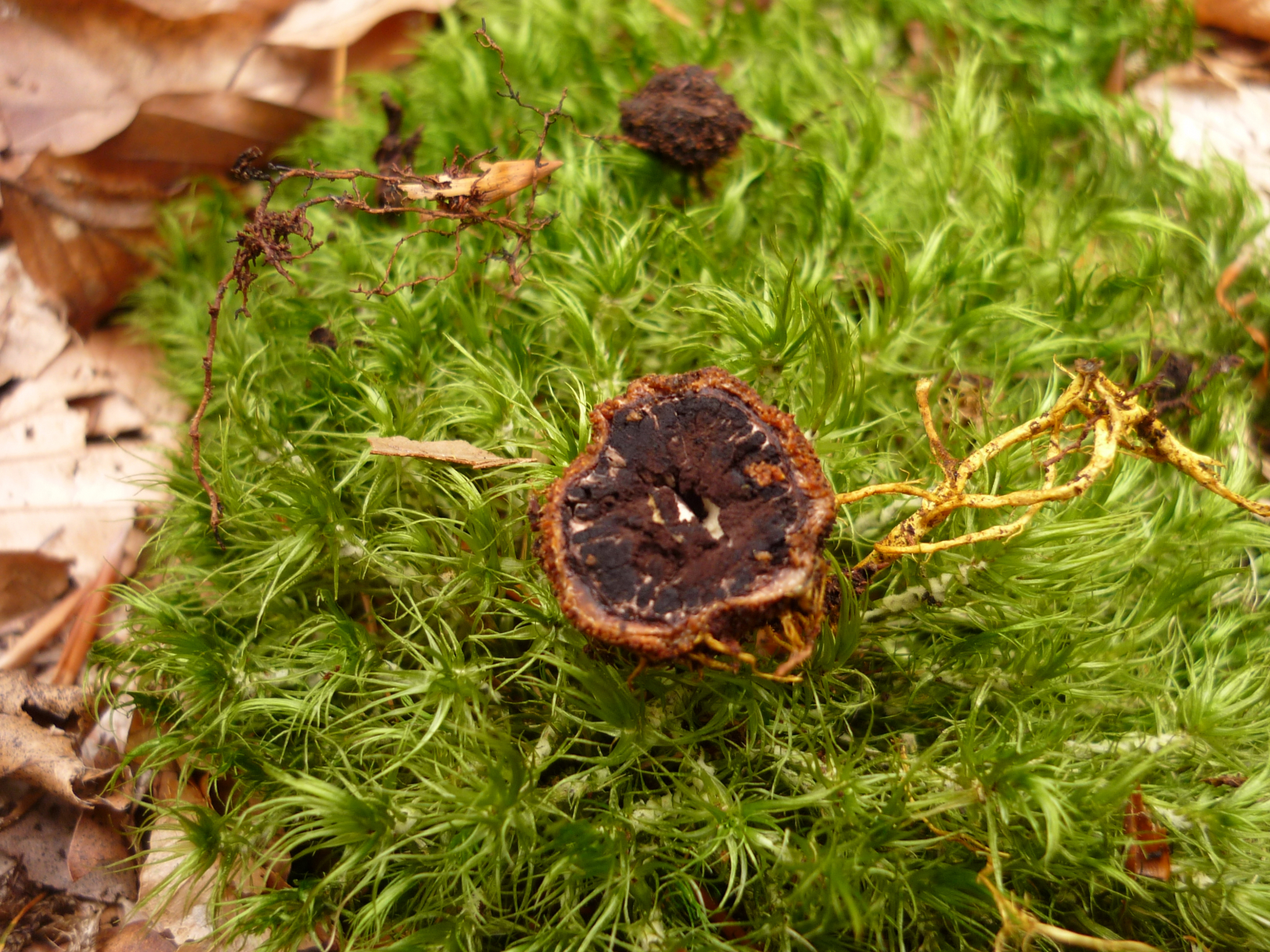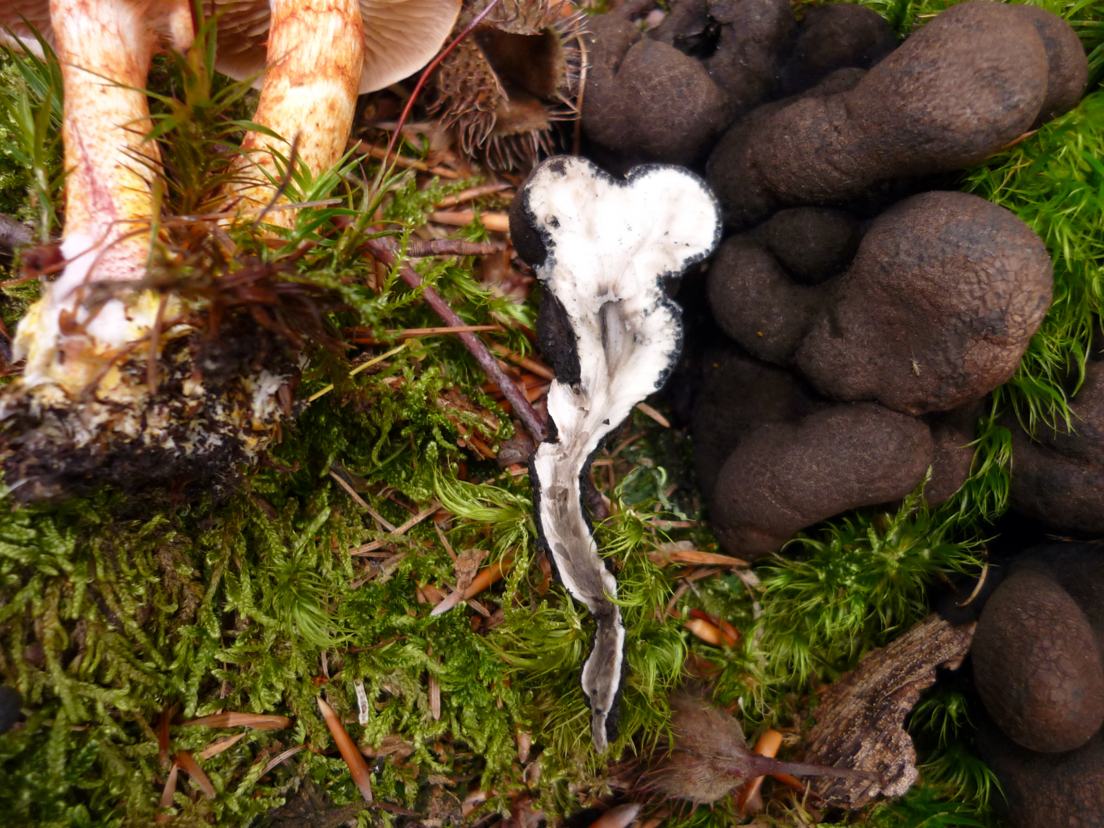 was für ein Tag. Totentrompeten habe ich zwar nicht gefunden aber Tärääää eine Hirschtrüffel tief im Waldboden versteckt, unter einer Zungenkernkeule, wo sie hingehört. So was lernt man übrigens beim Pilzrätsel