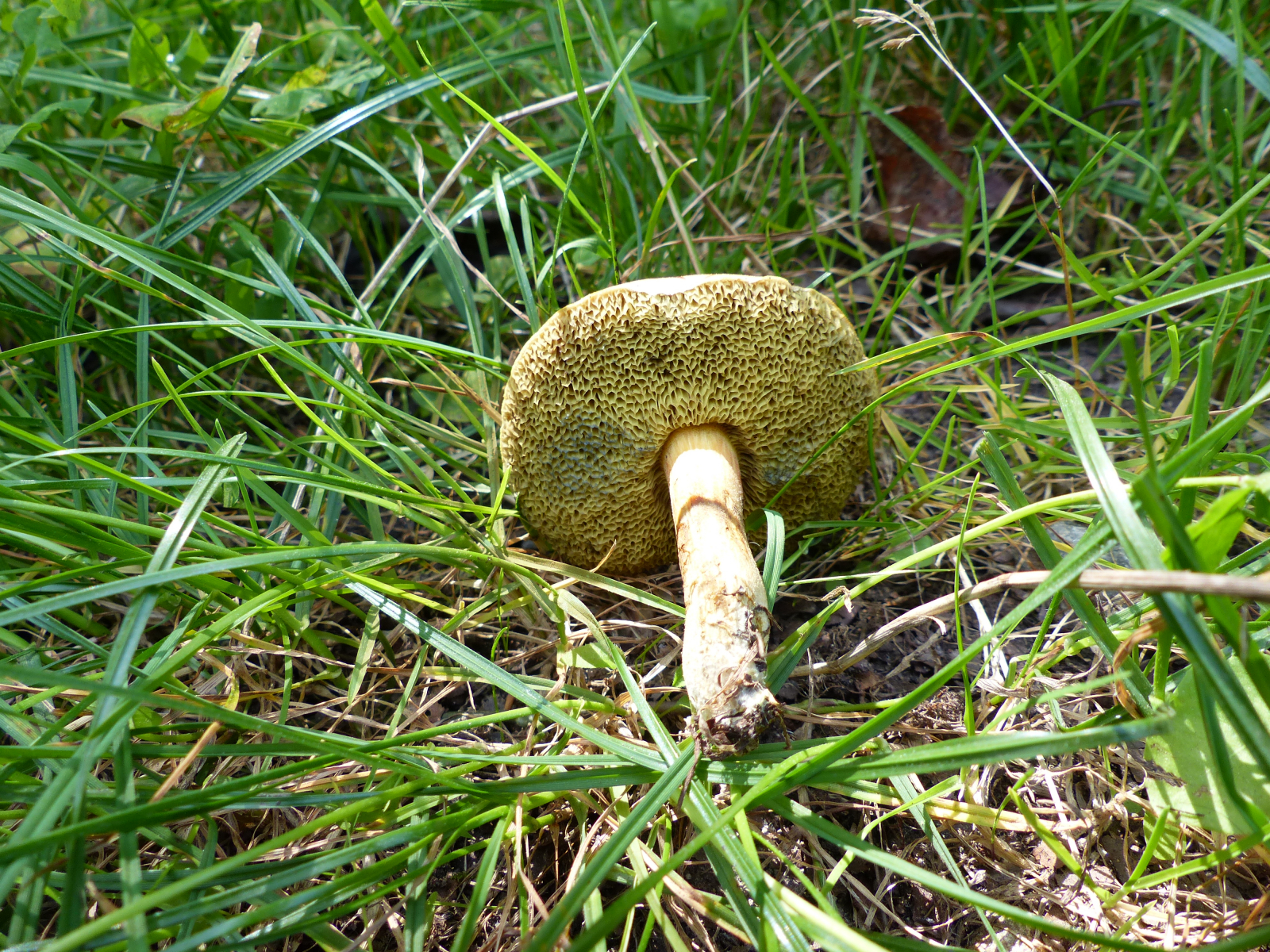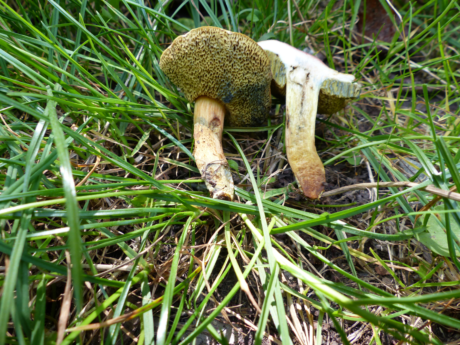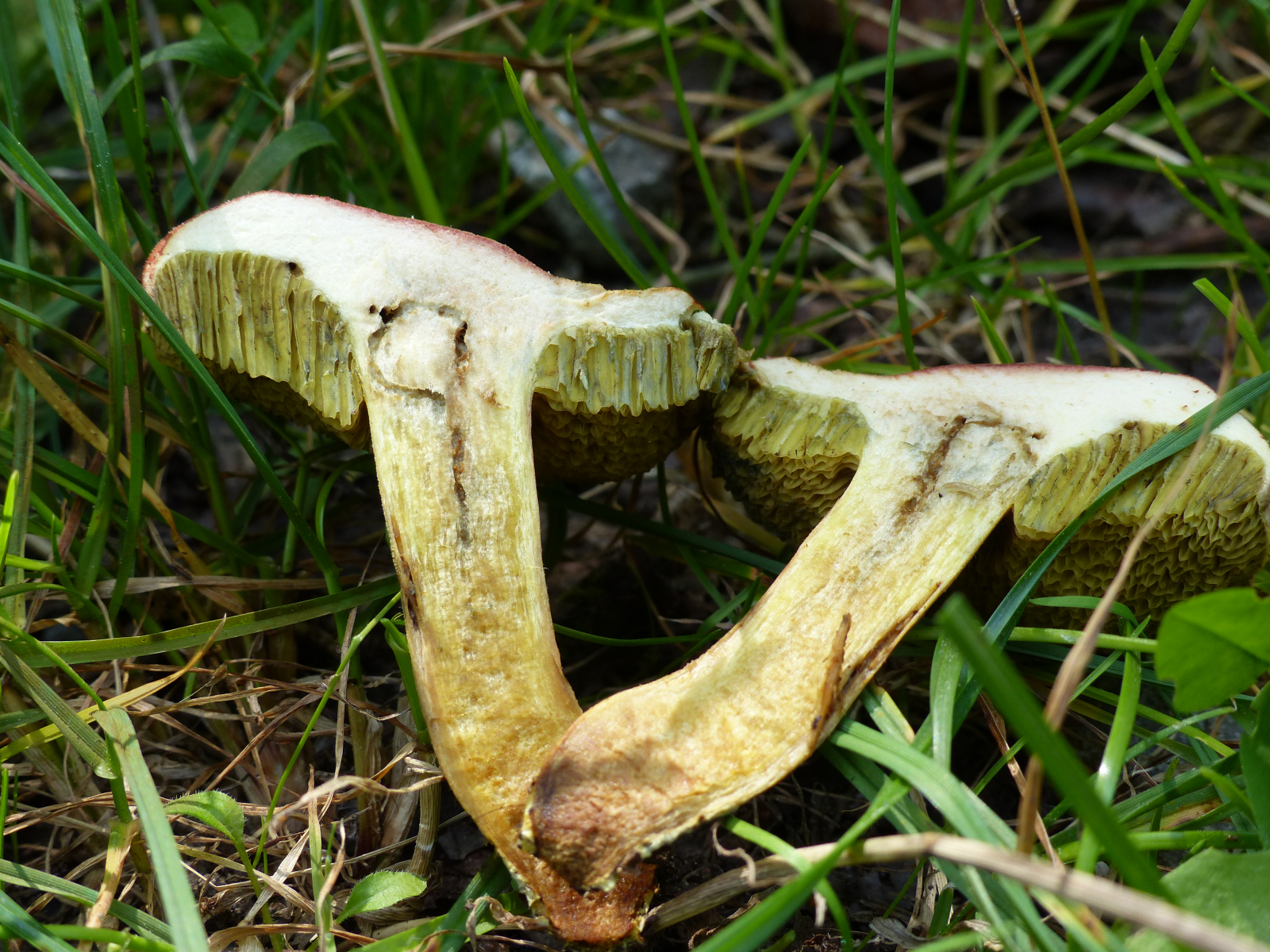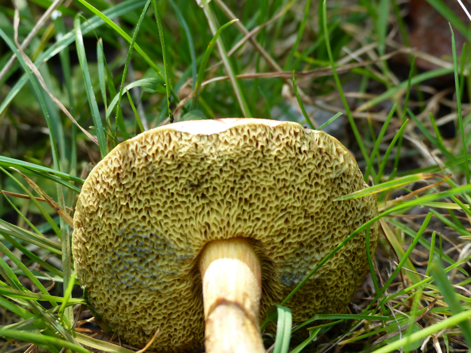 Röhren: olivgelb, Mündungen groß, bei Berührung blauend, ganz dicht am Stiel gewachsen, Mündungen eckig,