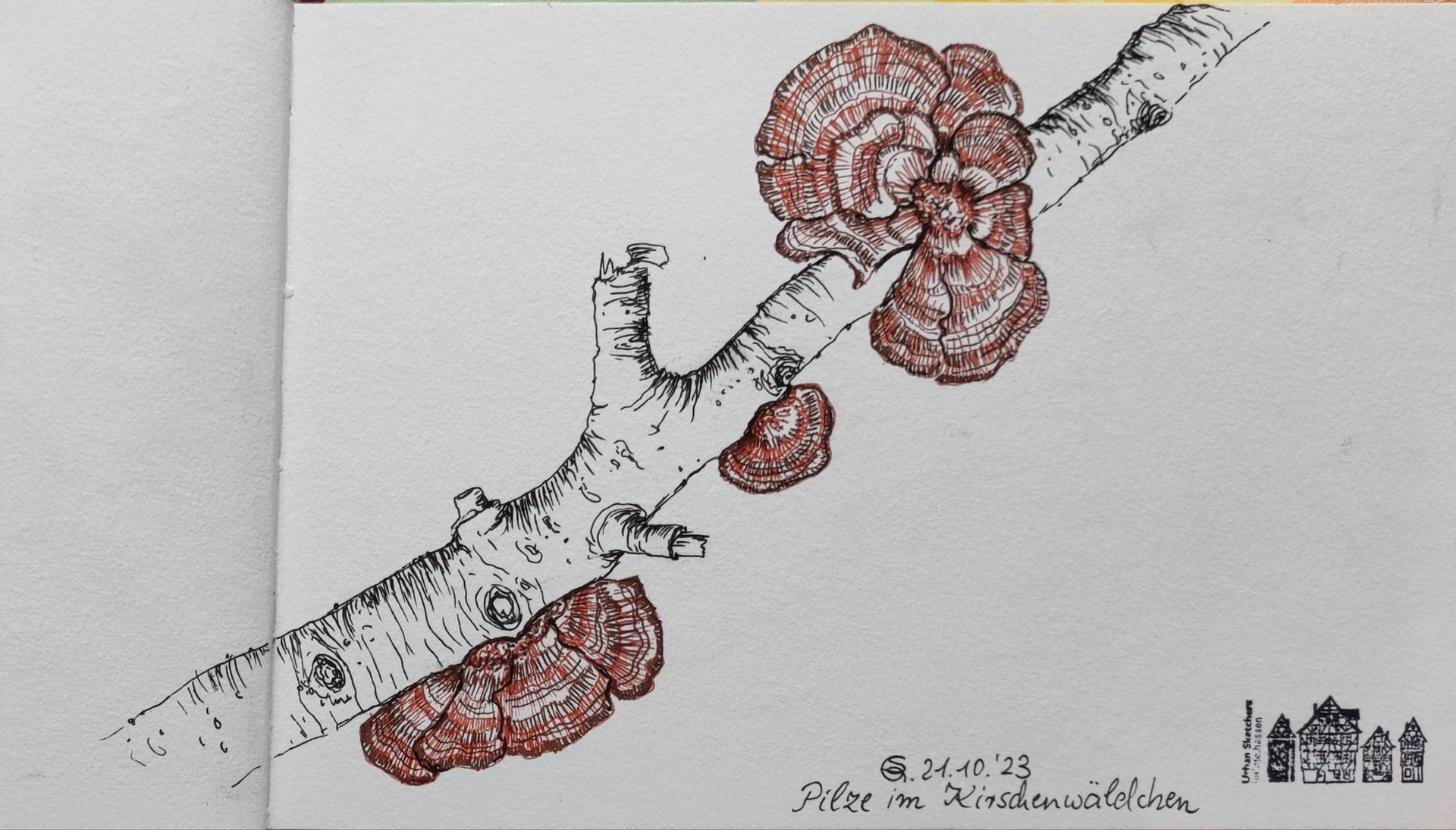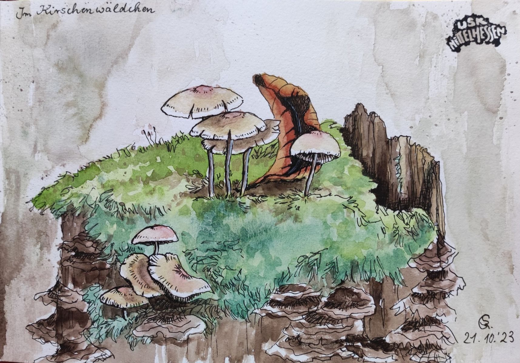 Moinsen! Nach langer Zeit stelle ich hier wieder mal etwas Kunst von mir ein. Gestern waren wir mit unserer Urban Sketching Gruppe in einem Wald bei uns in der Nähe zum Pilze zeichnen. Diese 3 Zeichnungen habe ich geschafft: