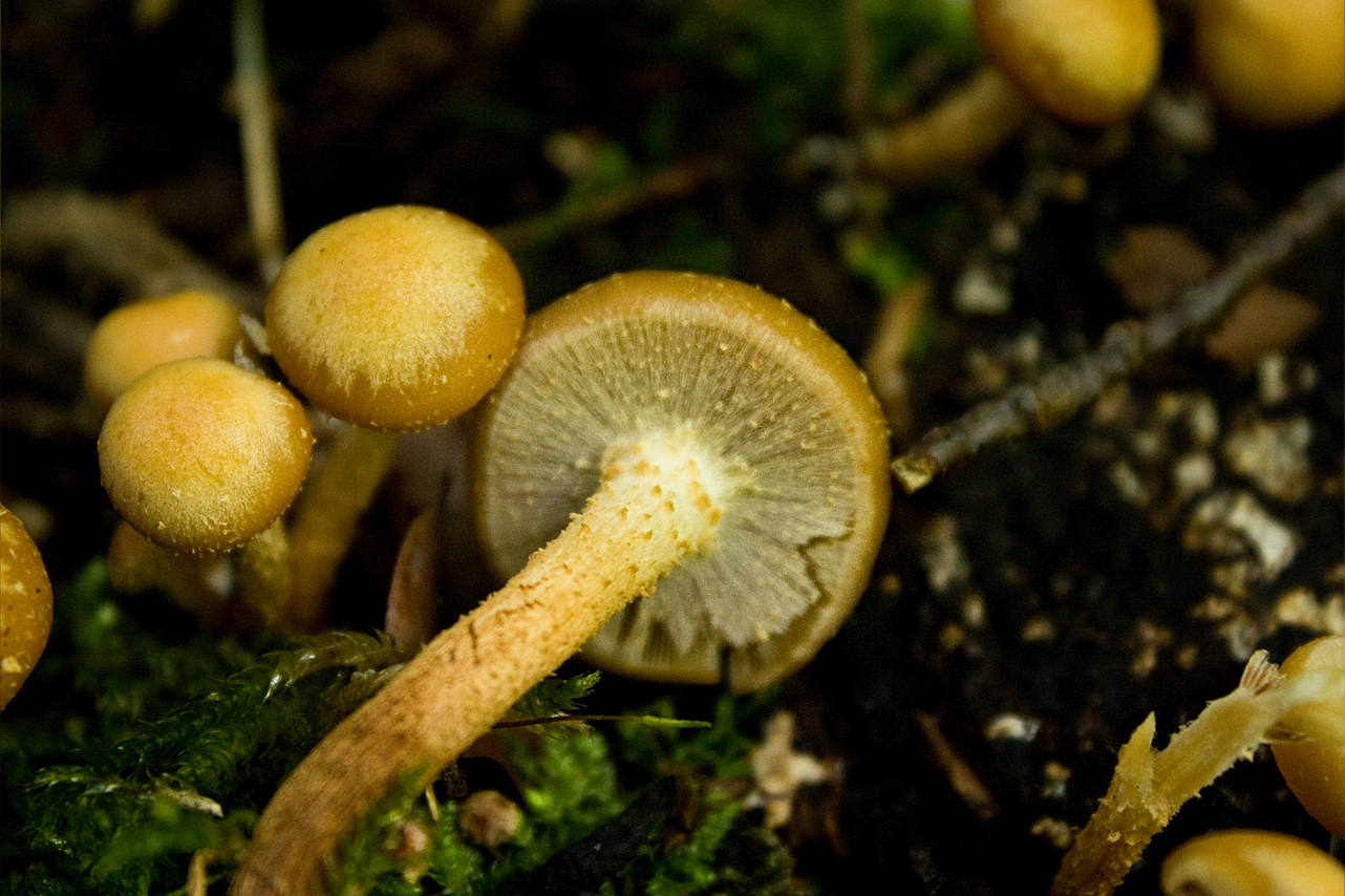 Einige bildhübsche Stockschwämmchen (Kuehneromyces mutabilis) fanden sich...