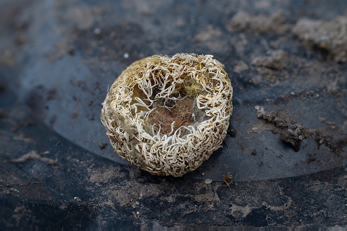 irgendwelche Parasiten an den vergammelten Stockschwämmchen sind. Durchmesser ca. 2cm.