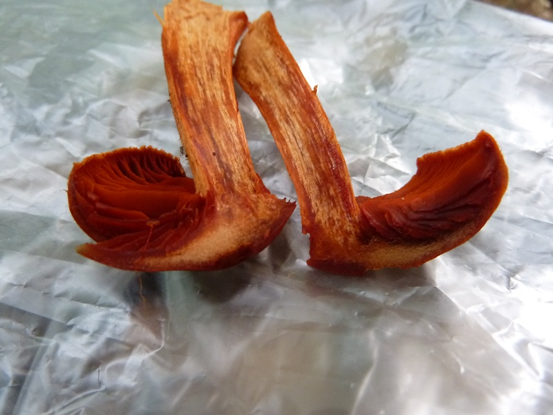 Leider habe ich nur diesen einen recht kleinen Fruchtkörper finden können, der auch noch etwas deformiert ist. Reicht das für eine Bestimmung?