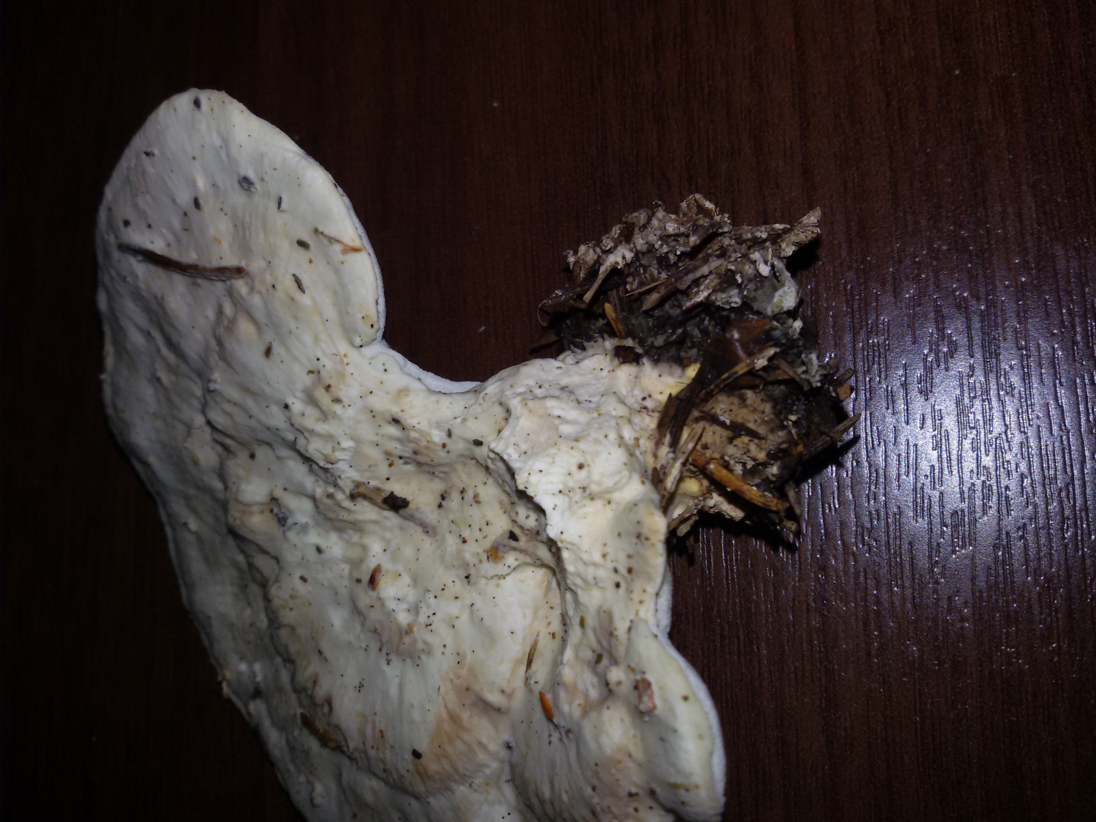 ich habe ja nun nachweislich keine Ahnung, aber darf ich nen einjährigen Ganoderma in den Raum werfen? Das letzte Bild zeigt einen Anflug von Stiel, das erinnert mich spntan an Ganoderma lucidum (Glänzender Lackporling), was allerdings voraussetzen würde, daß der Fruchtkörper vom Stammfuß oder einer Wurzel abgeknibbelt wurde. Ich habe allerdings nichtmal einen Anflug von Ahnung, wie der als Mumie aussehen, wofür ich den Fruchtkörper halte. :shy: