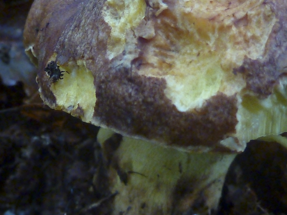 Meine erste Idee beim Anblick des Hutes war, dass ich endlich mal einen Anhängselröhrling gefunden habe, aber der müsste doch ein bräunliches Netz haben, oder?