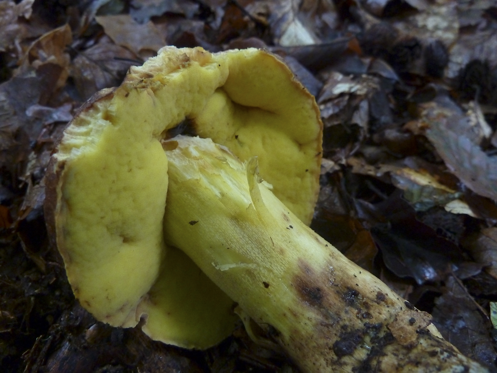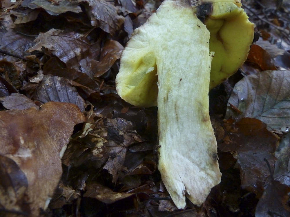 Der erste ist ein Röhrling, den ich in der Eifel auf Kalk gefunden habe, genauer gesagt: im Buchenwald.