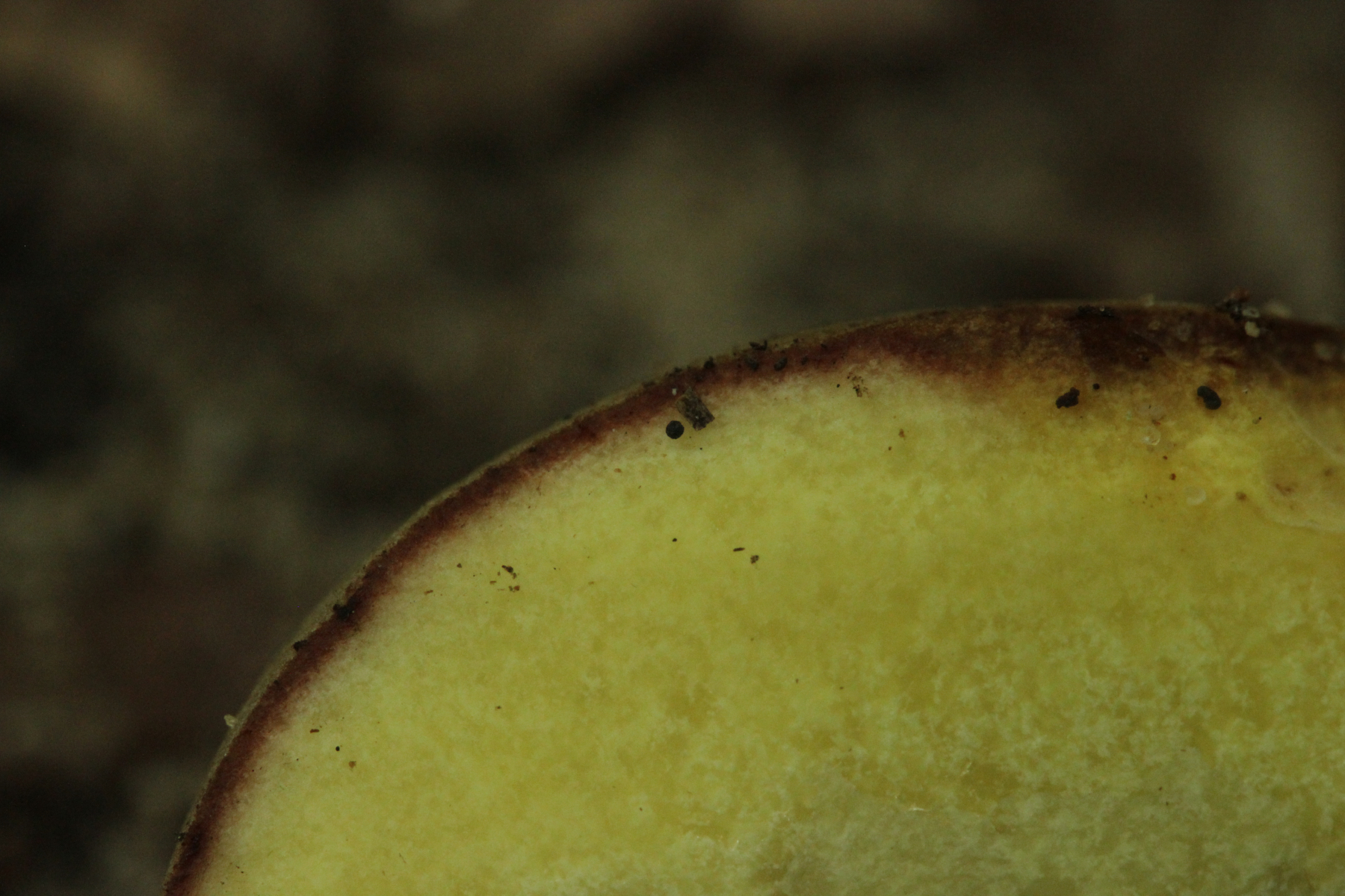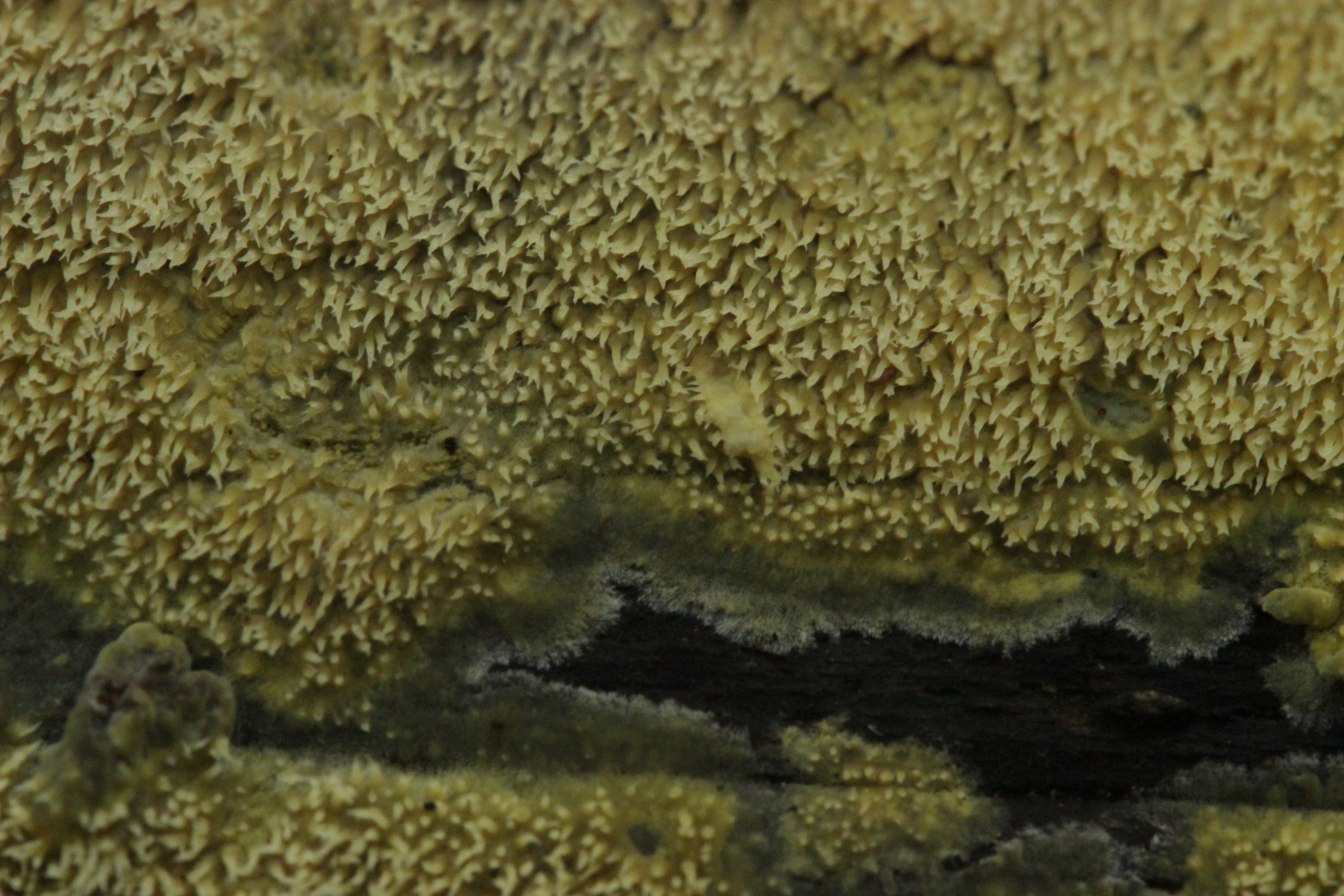8. Hier mußte ich direkt Phlebia bispora denken, die ich an anderer Stelle im Hiesfelder Wald für NRW erstgefunden habe. Auf jeden Fall trocknet jetzt ein Teil des Pilzes bei mir zu Hause und wartet darauf, daß er mikroskopiert wird.