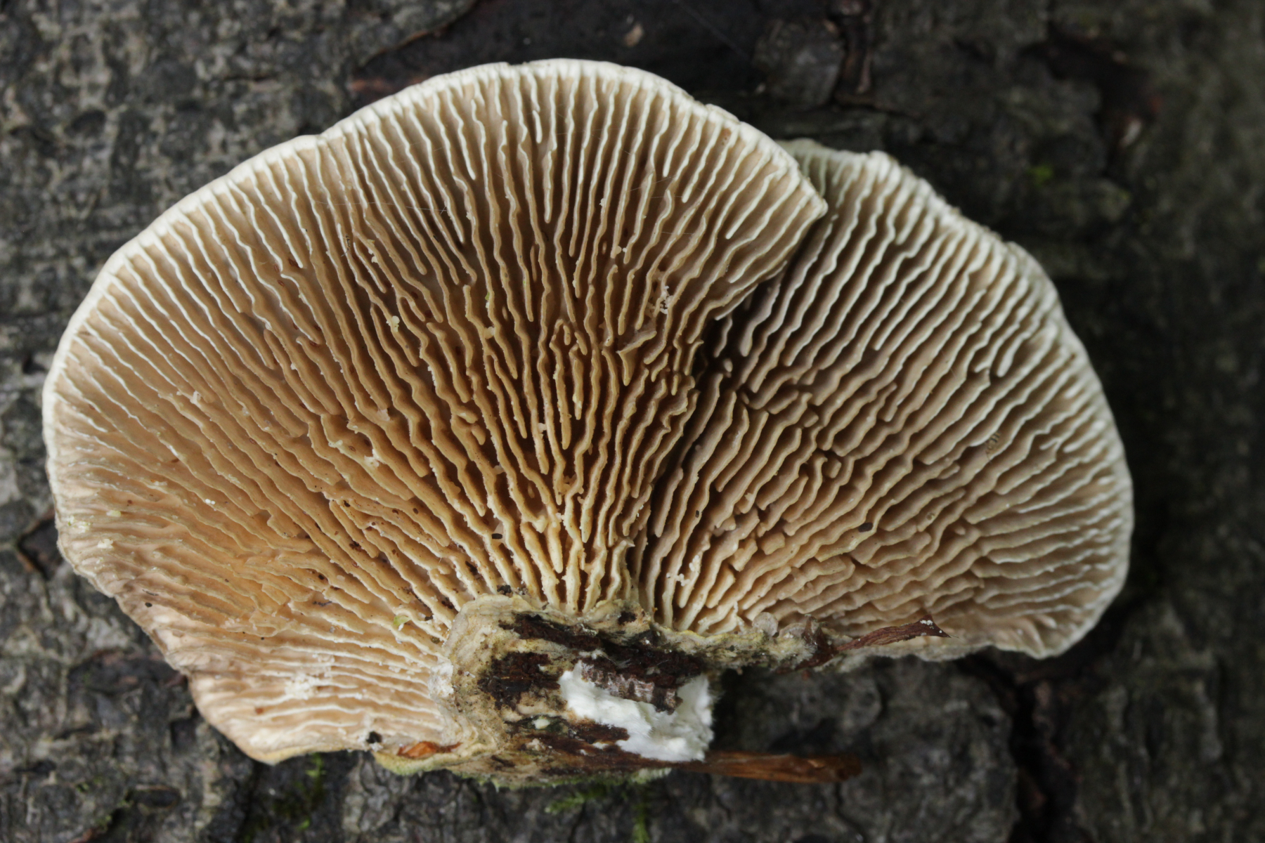 9. An einer toten Buche wuchs dann etwas Trametenartiges. Liege ich mit Daedaleopsis confragosa var. tricolor richtig? UPDATE: Von Stefan als Lenzites betulina identifiziert.