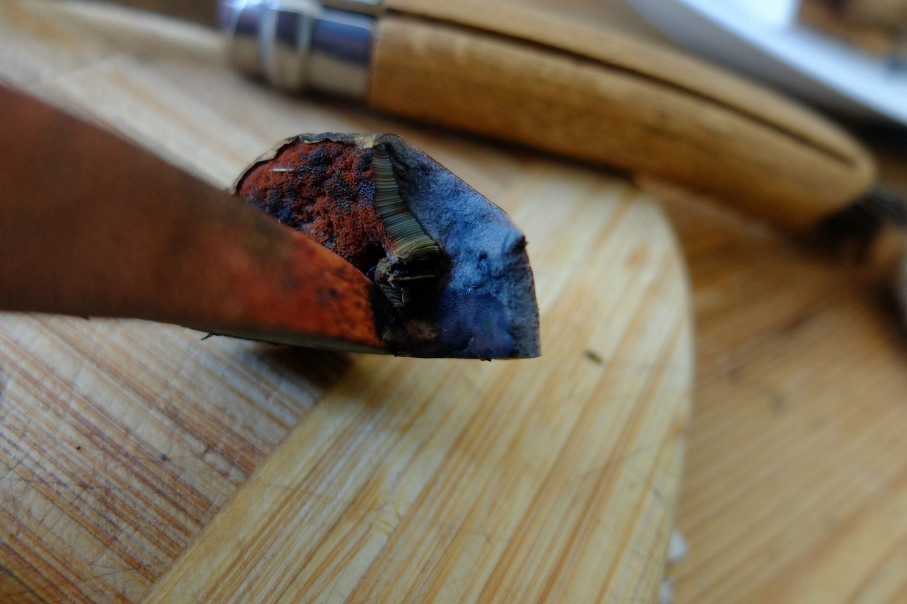 2b An der Stielspitze könnte ich mich wieder nicht entscheiden ob Netz oder nicht(zoomen möglich). Die Röhren sind (noch) nicht rot, aber an einer Stelle sieht es aus als würden sie sich noch umfärben. Falls nicht ist der Schönfuß eine Option? Geschmack habe ich nicht getestet.
