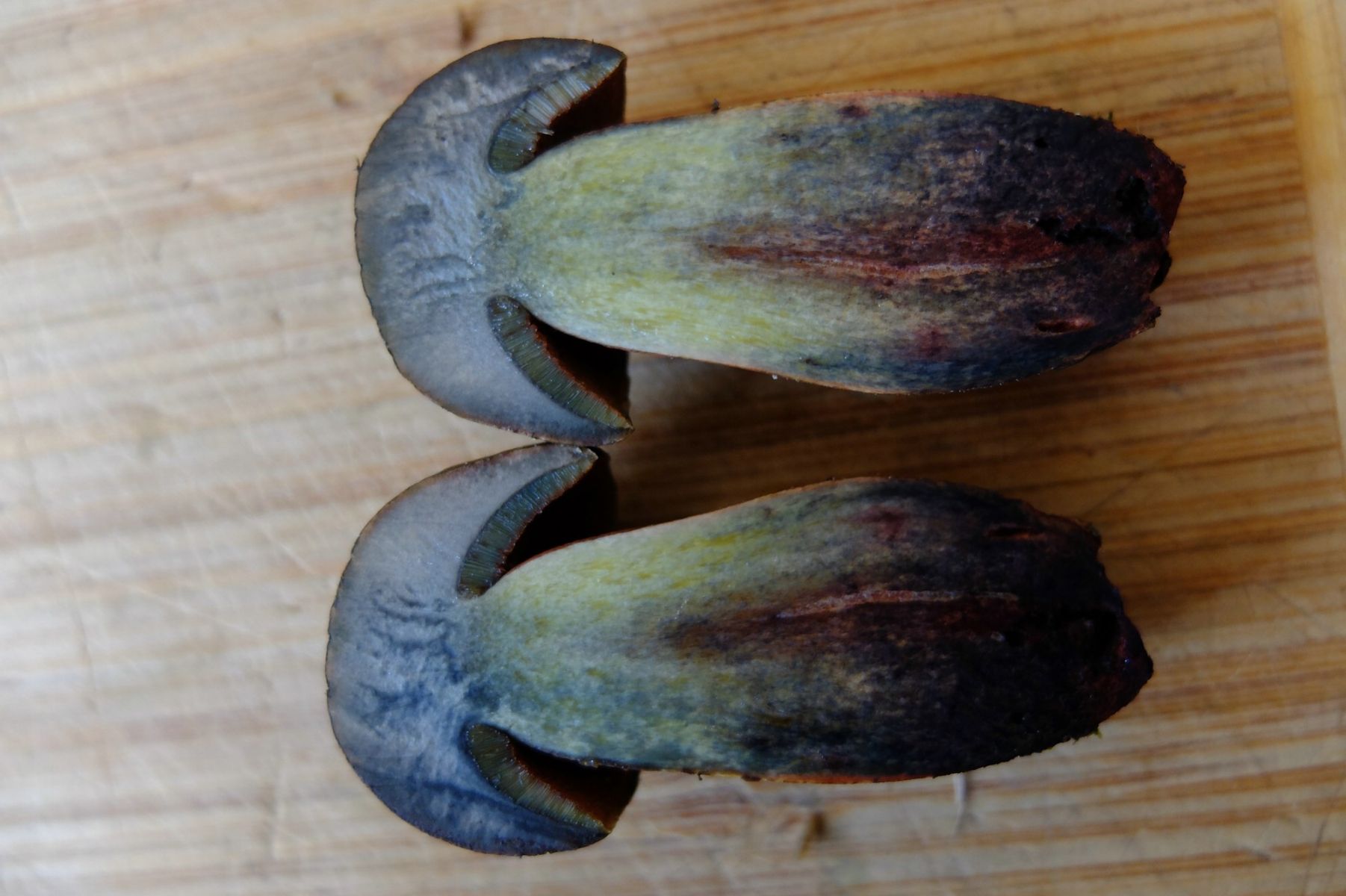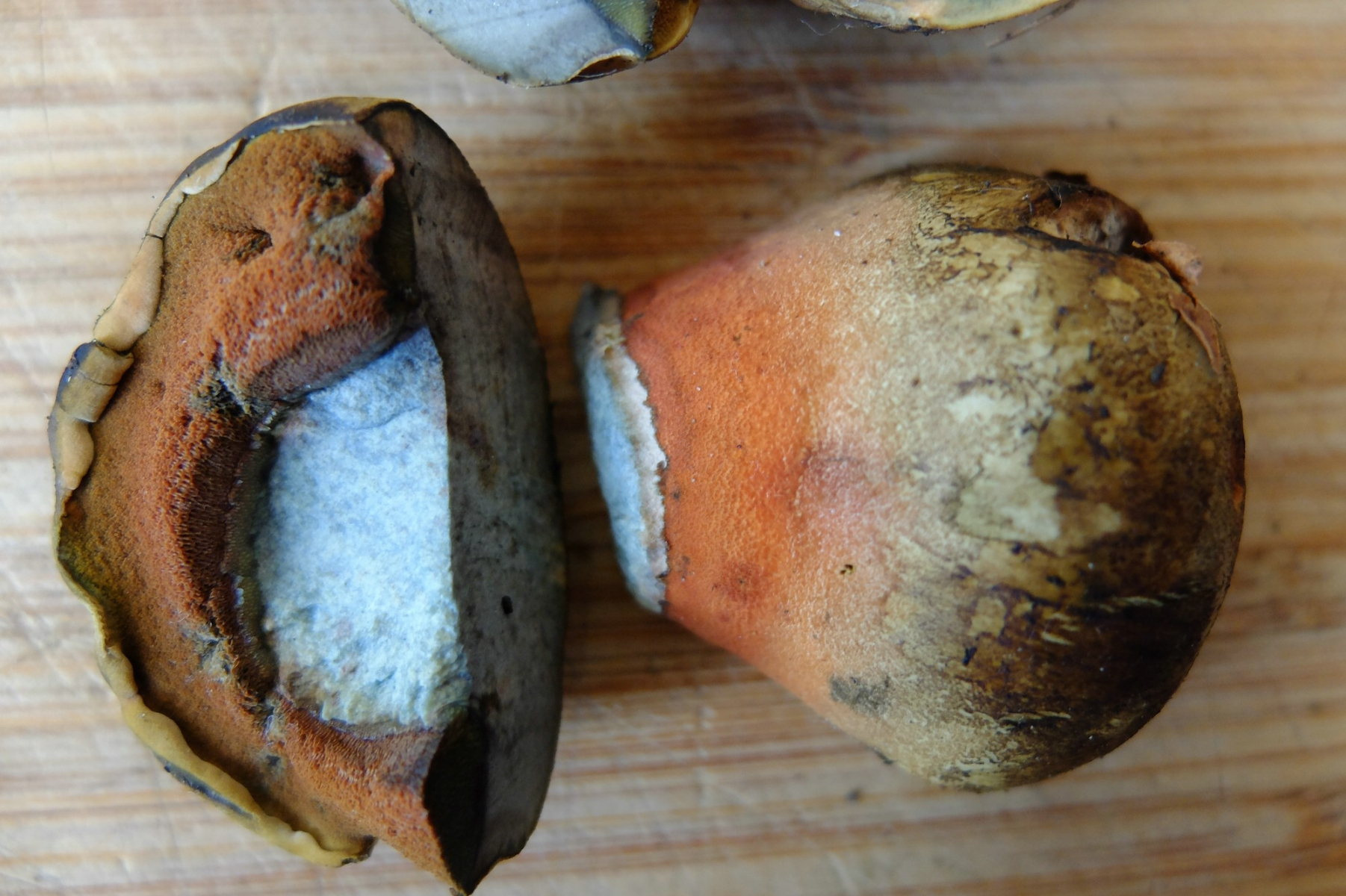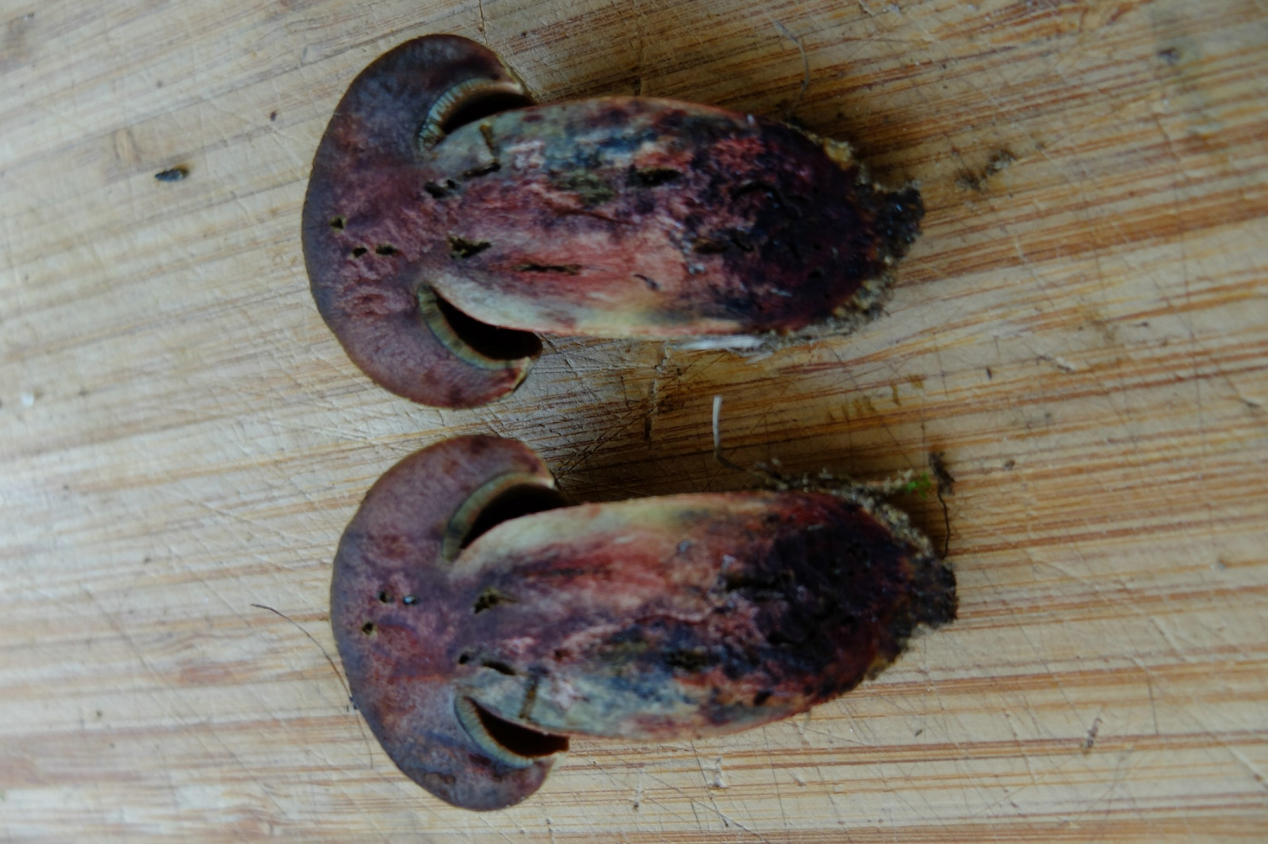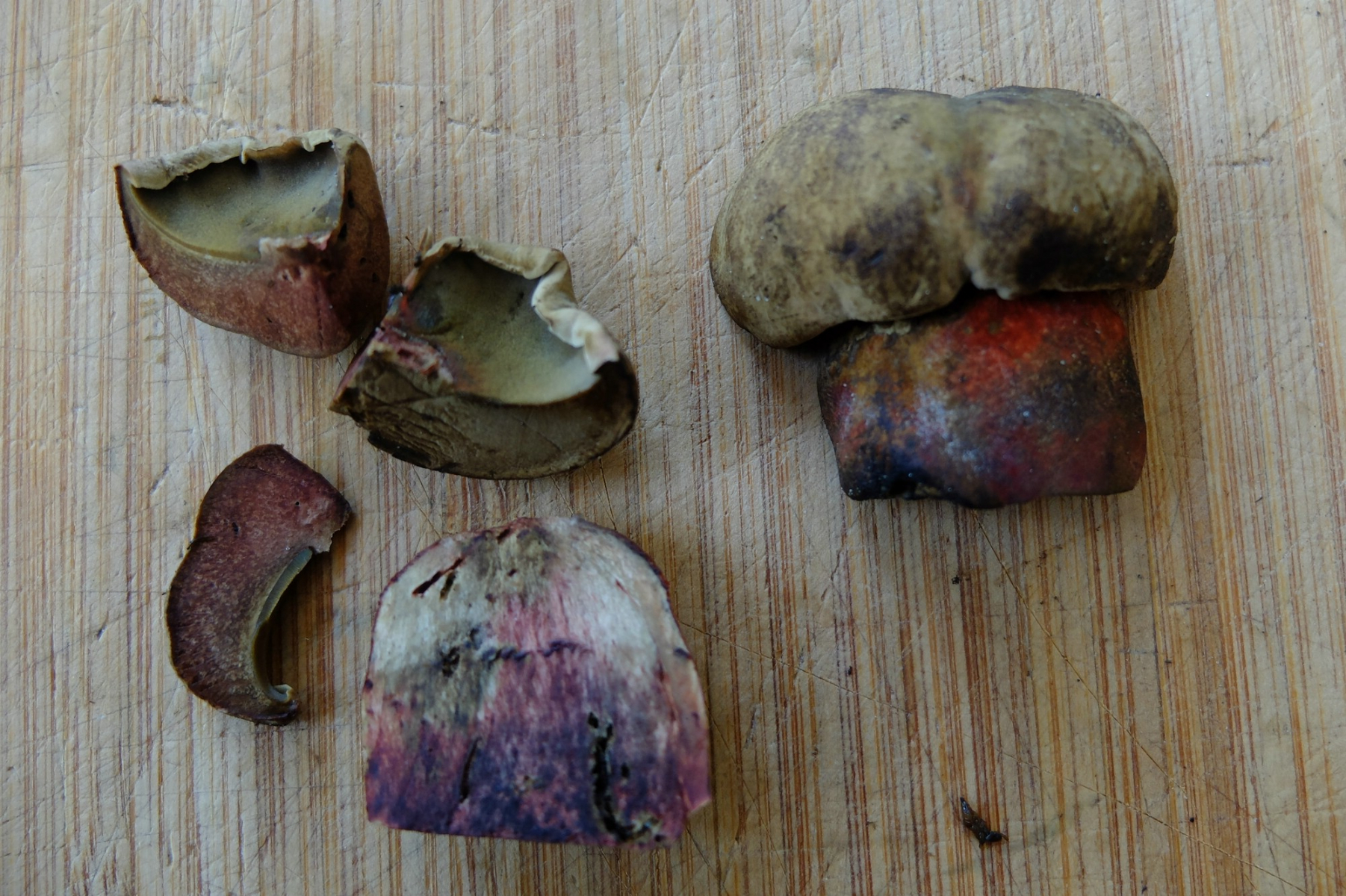 Bei 2 hätte ich spontan Schönfuß gesagt, wegen der Röhren, glaube aber wie du, dass die sich wohl noch umfärben. Auch das Weinrot passt nicht zum Schönfuß. In der Beschreibung von B. mendax steht, dass die Poren anfangs gelblich bis olivgelb sind. Könnte also auch S. mendax sein.