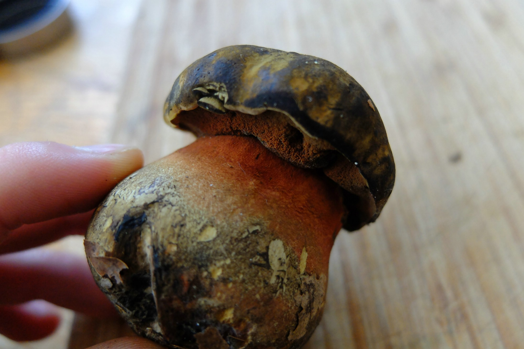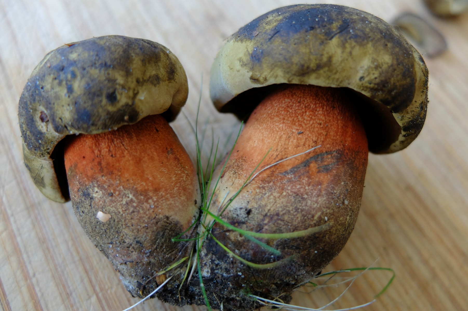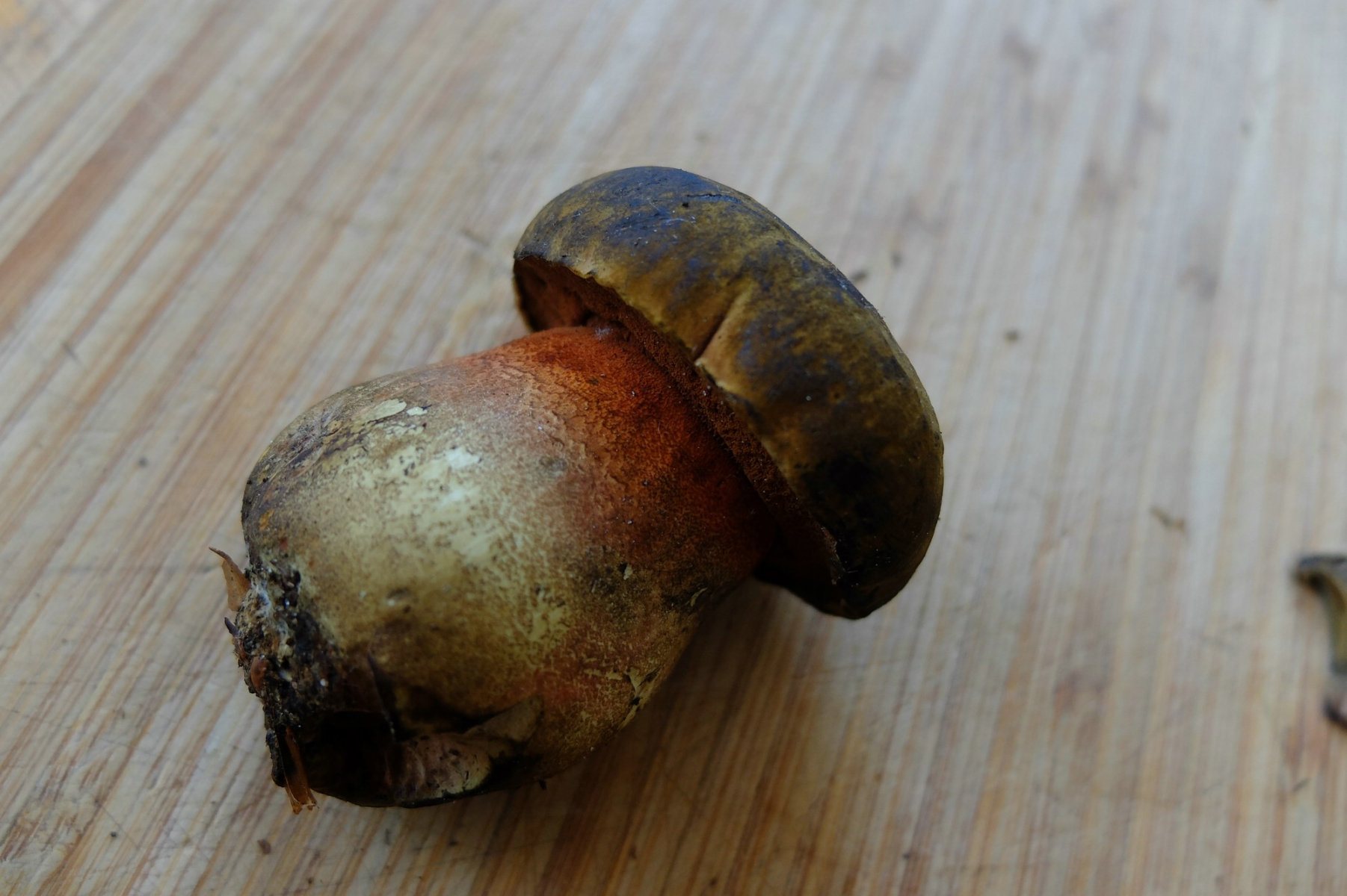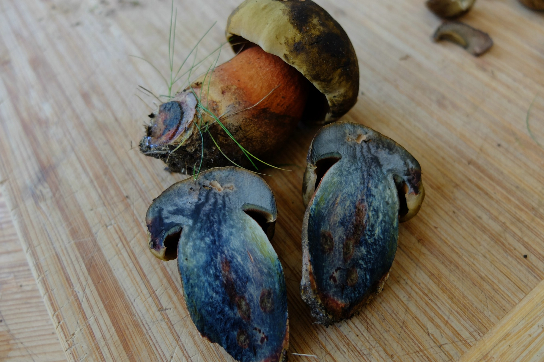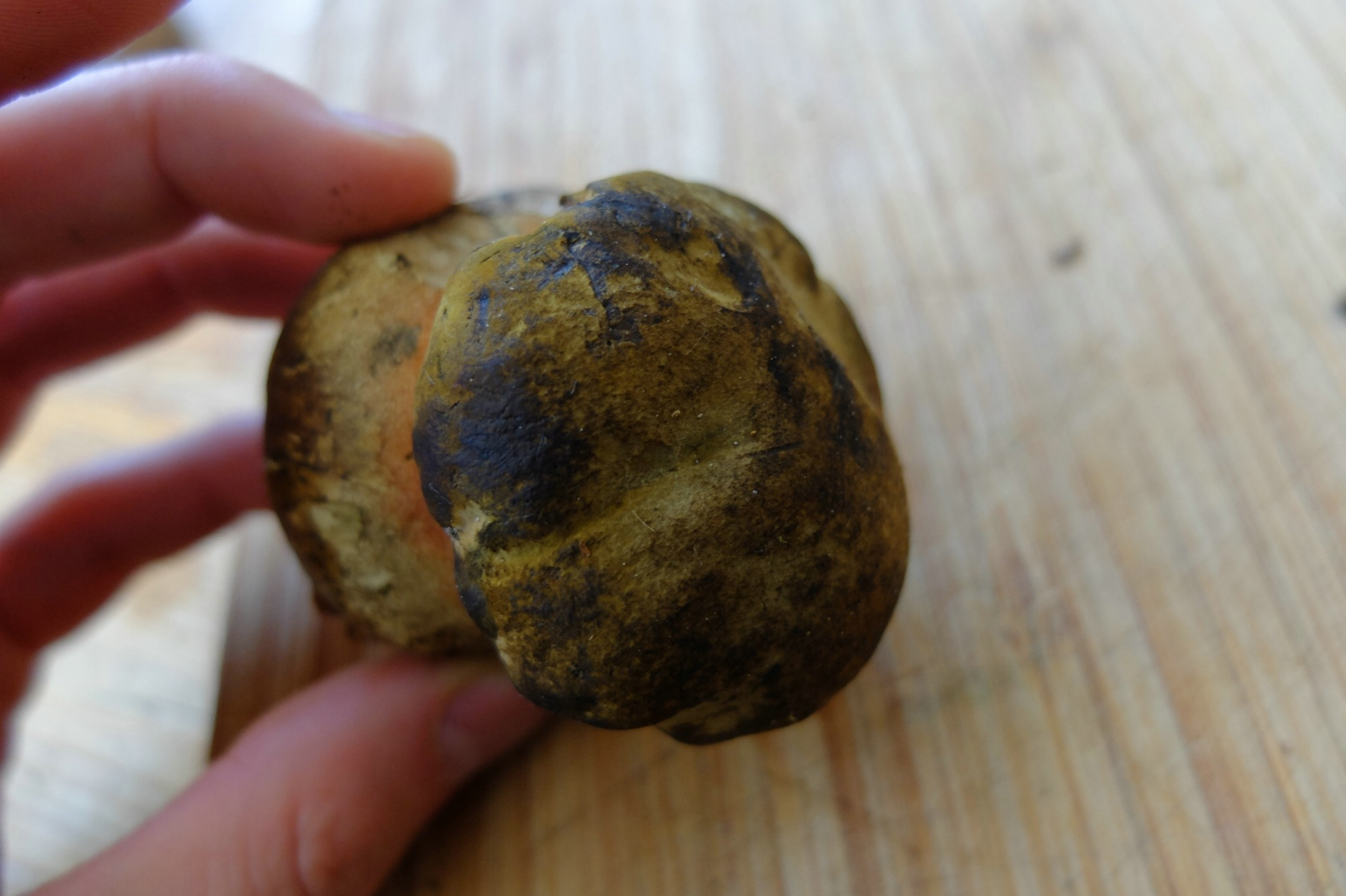 -Alle Pilze hatten relativ hellbraune bis gelbliche Hüte die auf der Huthaut geblaut haben.