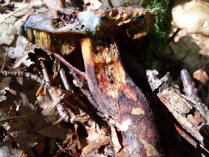 Der netzstielige Hexenröhrling hat mich schon mehrfach "an der Nase herumgeführt". Diesmal grübele ich wegen der deutlichen Rottöne im Hut, bisher hatte ich hellbraun, graubraun, olivbraun, gelbbraun und alle Zwischenschattierungen ohne so deutliche Rottöne. Ist das noch im Rahmen oder eine Varietät?