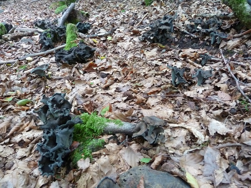 @ Heidi: Hier hat es auch schon einige Tage nicht richtig geregnet. Je nach Wetterlage suche ich am Südhang (da sind derzeit die Hutränder der Herbsttrompeten vertrocknet) oder am schattigen Nordhang mit viel jungem Buchenunterholz (da sind die Exemplare gleichmäßig dunkel gefärbt ohne vertrockneten Hutrand).