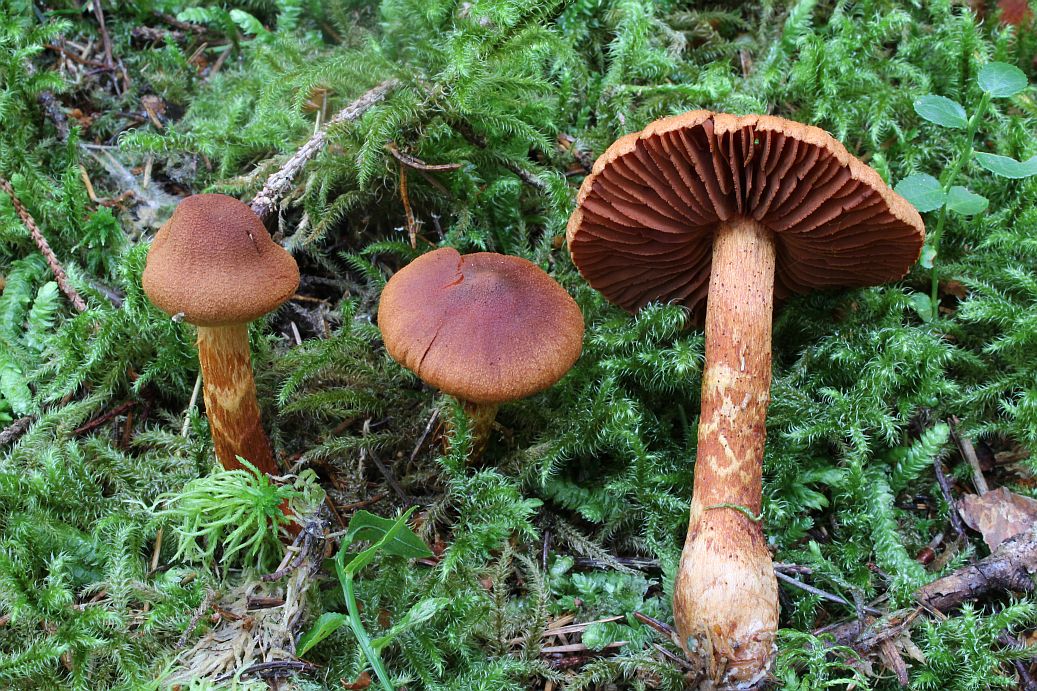 Hat wohl auch keine Stielbänderung, also in diesem Merkmal wie C. orellanus(?), Standortansprüche aber eher wie C. rubellus(?). Spielt die Hutfarbe auch noch eine Rolle, oder ist die zu variabel?