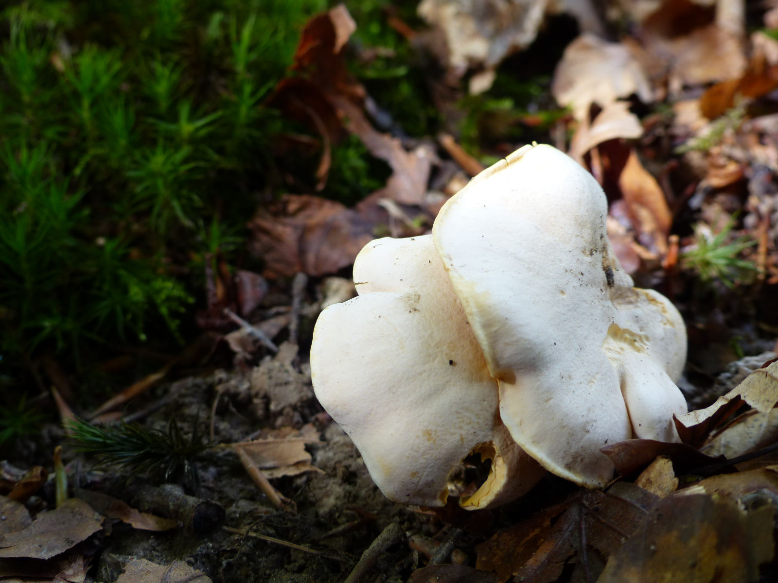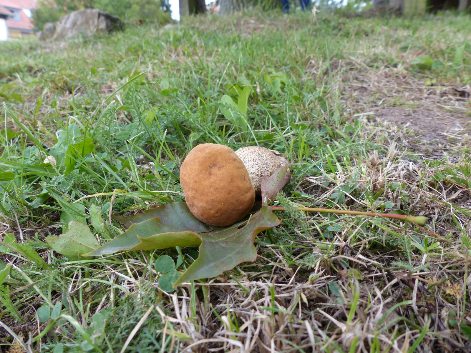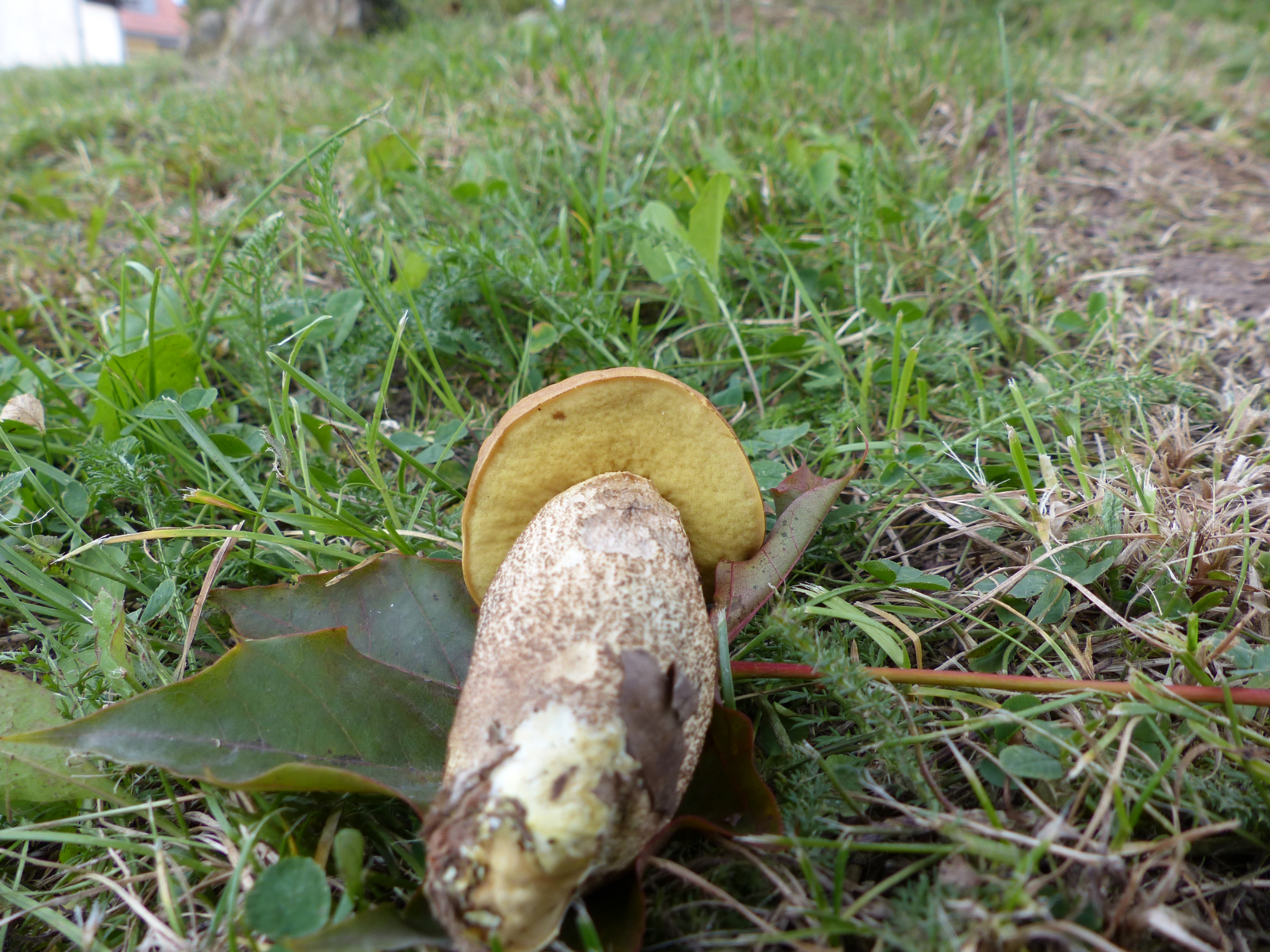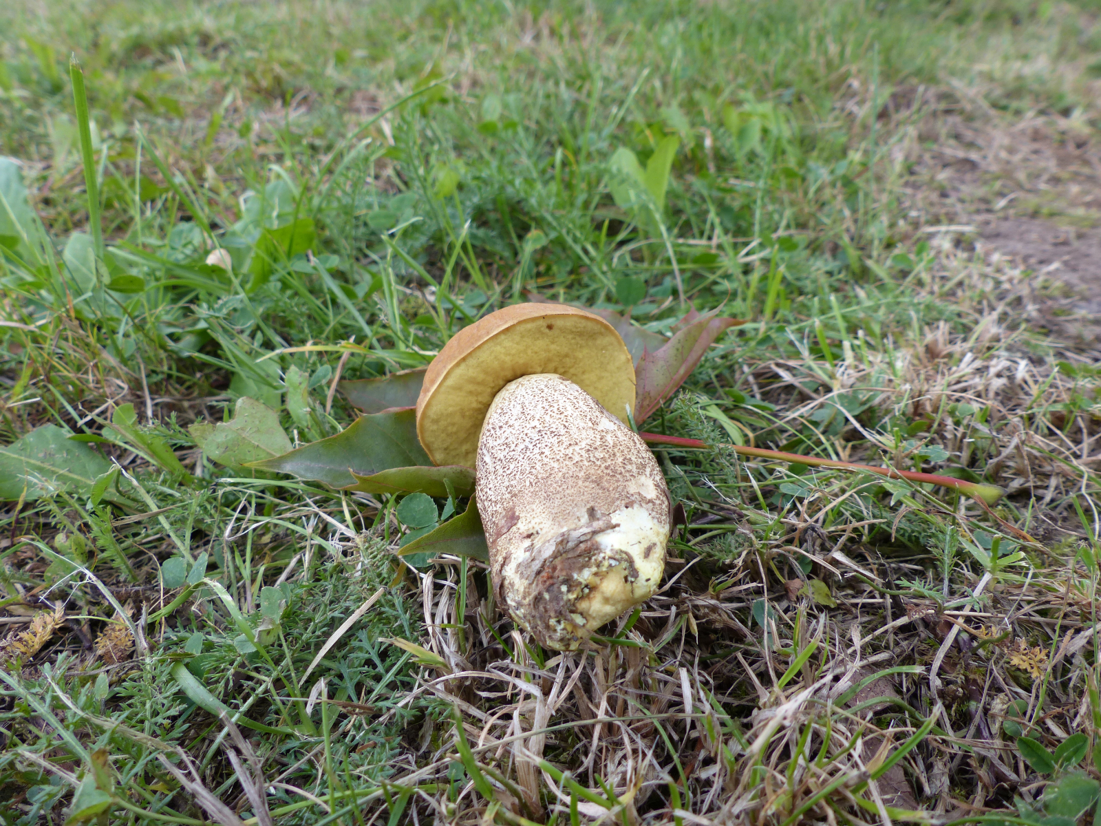 frau konnte es gar nicht glauben; mit einem gelbporigen Raufuss. Das war dann der zweite innerhalb einer Woche an zwei verschiedenen Fundorten. Klugerweise hat er die Stielbasis mit gebracht, sogar am Pilz dran. Vorbildlich. Seht selbst...........