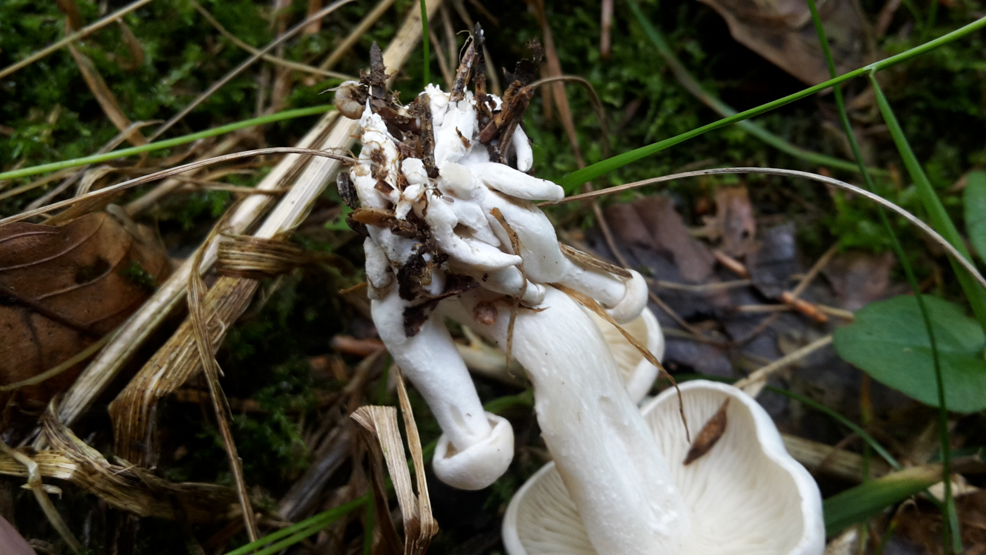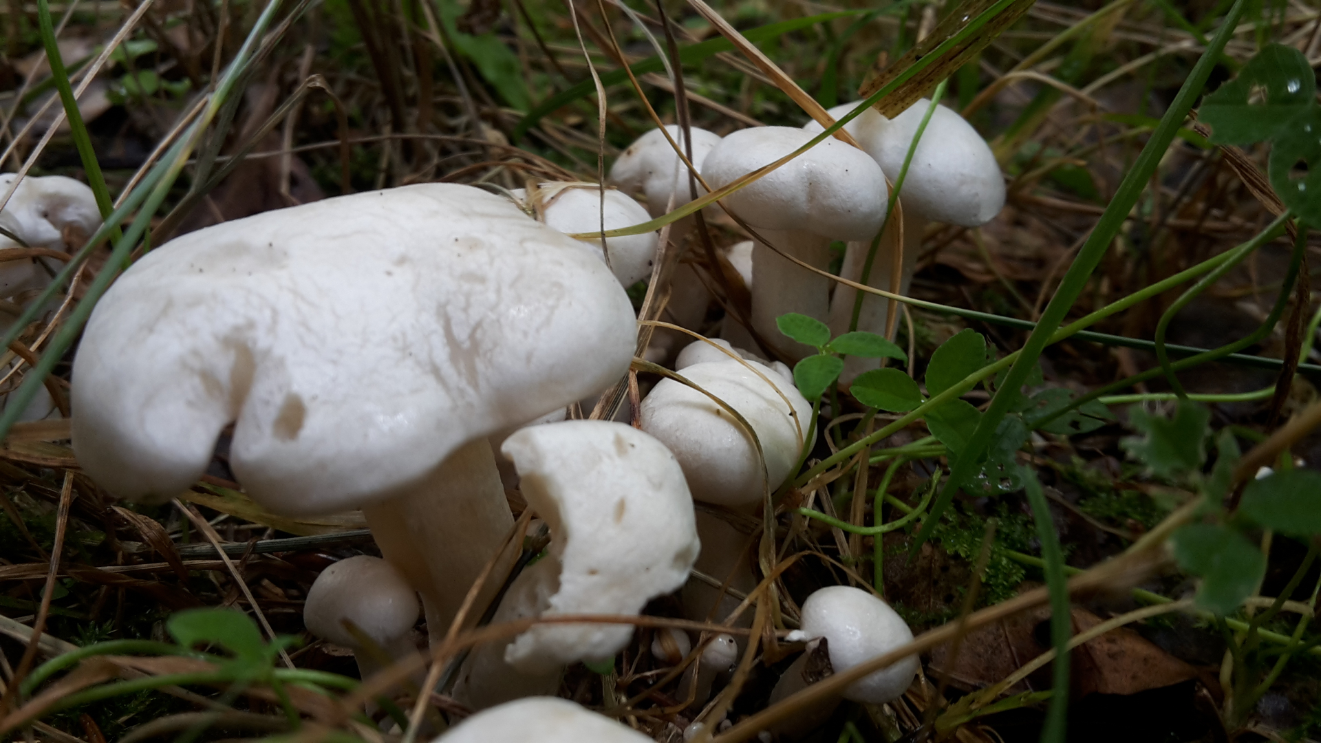 komisches Ding. Ich gebe Beli recht; so auf den Fotos wirkt der Hut bereift; das sollte ein weißer Trichterling sein; trotz des büschligen Wuchses. im Übrigen stan der weiße Rasling noch bis vor kurzem bei Clitocybe und demzufolge ist das in jedem Fall ein weißer Trichterling. :nana: