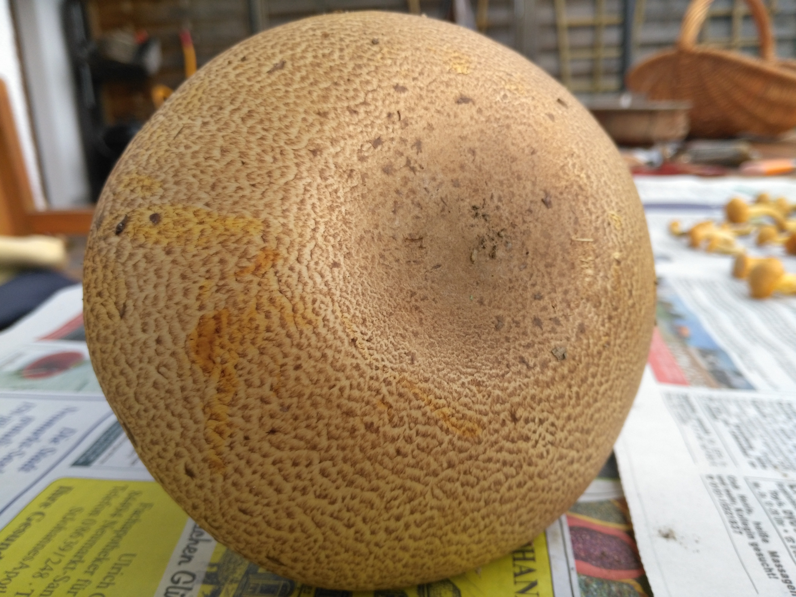 ich fand heute den 1. Champignon überhaupt in meiner schon etwas andauernden Karriere als Pilzsammler. Ich würde den als Braunschuppigen Riesenegerling benennen. Standort: Am Waldrand unter Fichten. Hut hat einen Durchmesser von ca. 16 cm, Höhe des Pilzes etwa genauso hoch. Fleisch verfärbt sich an der Basis leicht rosa. Fleisch verfärbt sich im Schnitt ganz leicht gelblich. Hut reagiert auf Druck mit leichter Verfärbung ins dunklere Gelb. Lamellen weiß bis leicht rosa, riecht stark nach Anis oder Bittermandel, da bin ich mir aber nicht ganz sicher, vielleicht rieche ich falsch :-). Lamellen freistehend. Vielleicht kann mir bitte jemand helfen, was das für ein Kollege ist?