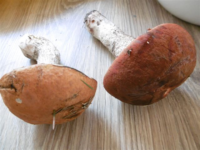 Ich fand da diese herrlichen Rotkappen in der Heide.An Bäümen steht dort Lärche und Birke.Diese Rotkappen sind sehr dunkel und markant in der Huthautüberlappung.Irgendwie wie Eichenrotkappe,aber keine Eiche dort.Wie mache ich das Teil fest an einem Namen? Die rechte ist immer dieses Rätsel im Vergleich zur normalen Rotkappe.Ich denke mal Birkenrotkappe,oder?